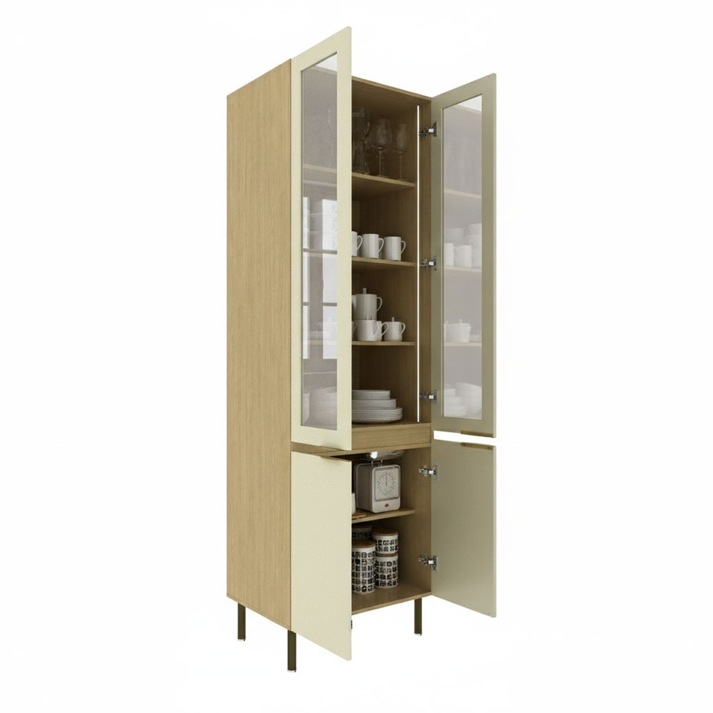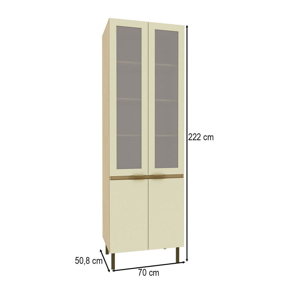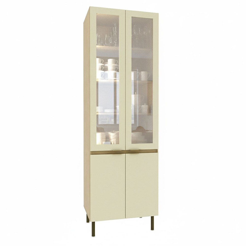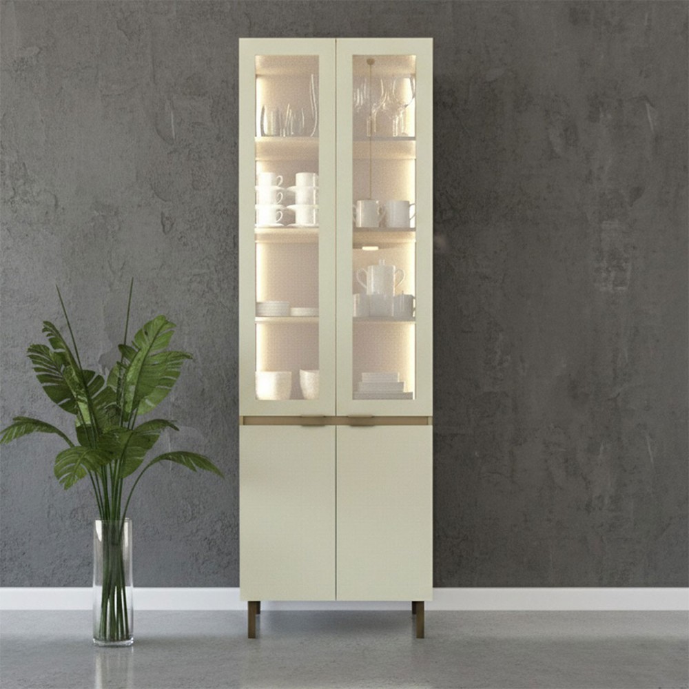 Cristaleira Nanda 4 Portas com Vidro e Led Nature/Arenas - Tecno Mobili