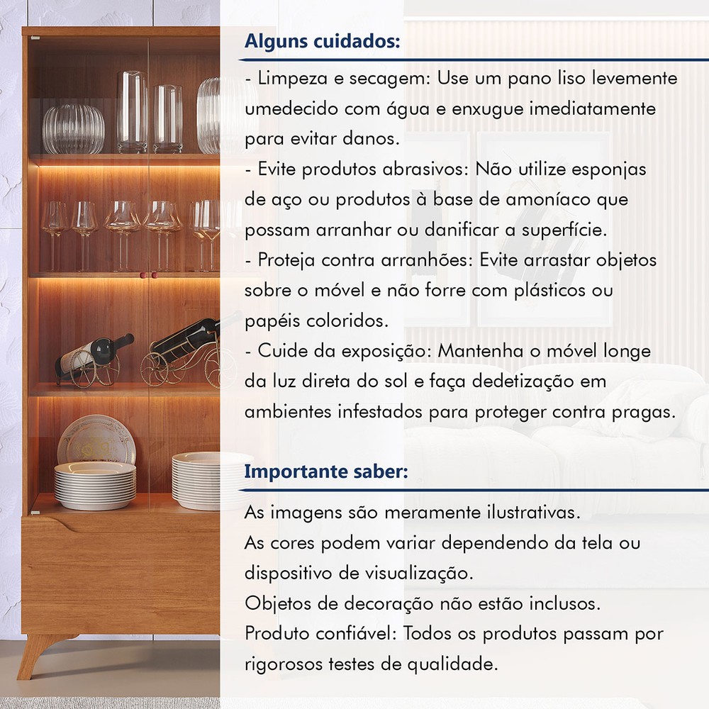 O(a) Cristalera Grécia New 2 Portas 1 Gaveta com Vidro e Led Naturalle - Mavaular é produzido em MDF na escala de brilho Semi-Brilho, e possui um grau de dificuldade de montagem: Médio.