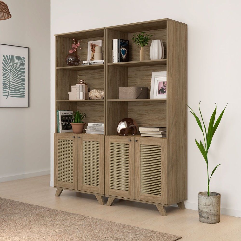 O(a) Armário Multiuso Trama 2 Portas 4 Prateleiras Cinamomo/Off White - Artely é produzido em MDF e MDP na escala de brilho Fosca com Textura, e possui um grau de dificuldade de montagem: Médio.
