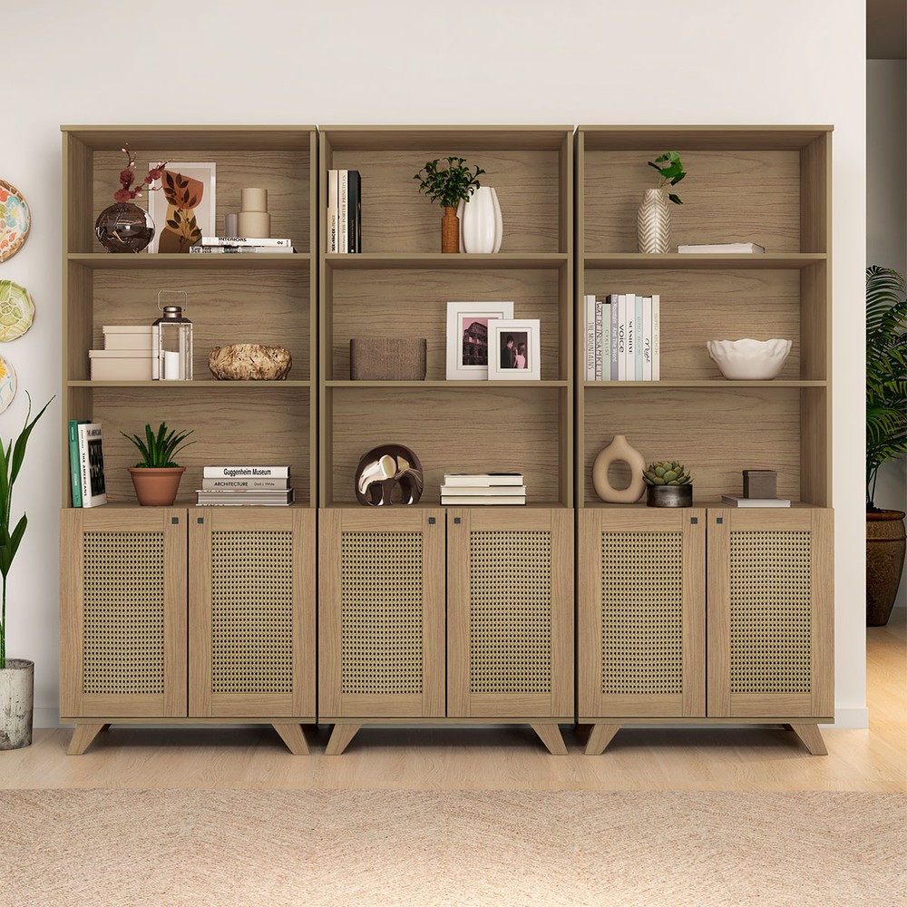 Estante Multiuso 6 Portas 12 Prateleiras Trama Cor Carvalho - Pnr Móveis