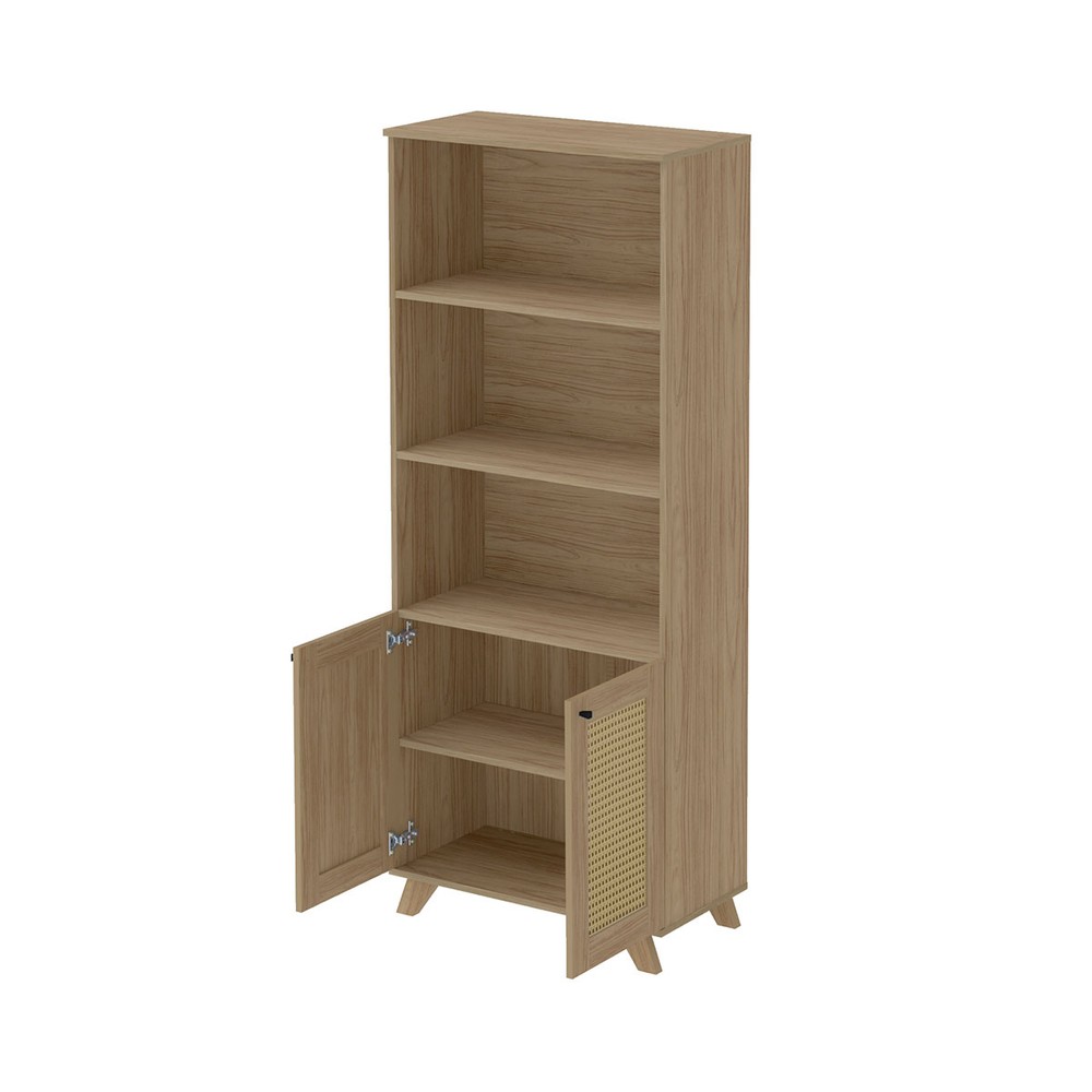 O(a) Armário Multiuso Trama 2 Portas 4 Prateleiras Cinamomo/Off White - Artely é produzido em MDF e MDP na escala de brilho Fosca com Textura, e possui um grau de dificuldade de montagem: Médio.