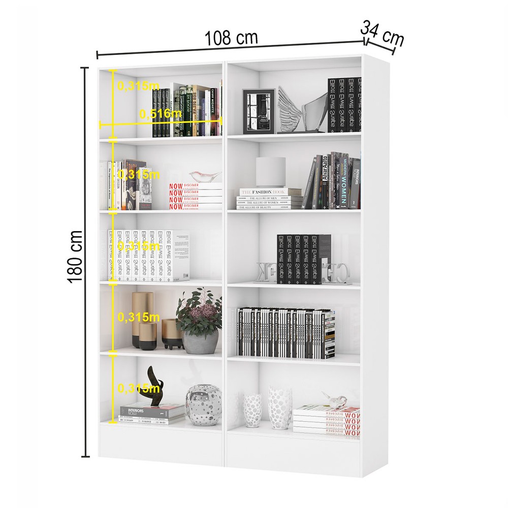O(a) Estante para Livros Duda 8 Prateleiras Branco - Carioca Móveis é produzido em MDP na escala de brilho Fosco e Semi-Brilho, e possui um grau de dificuldade de montagem: Médio.