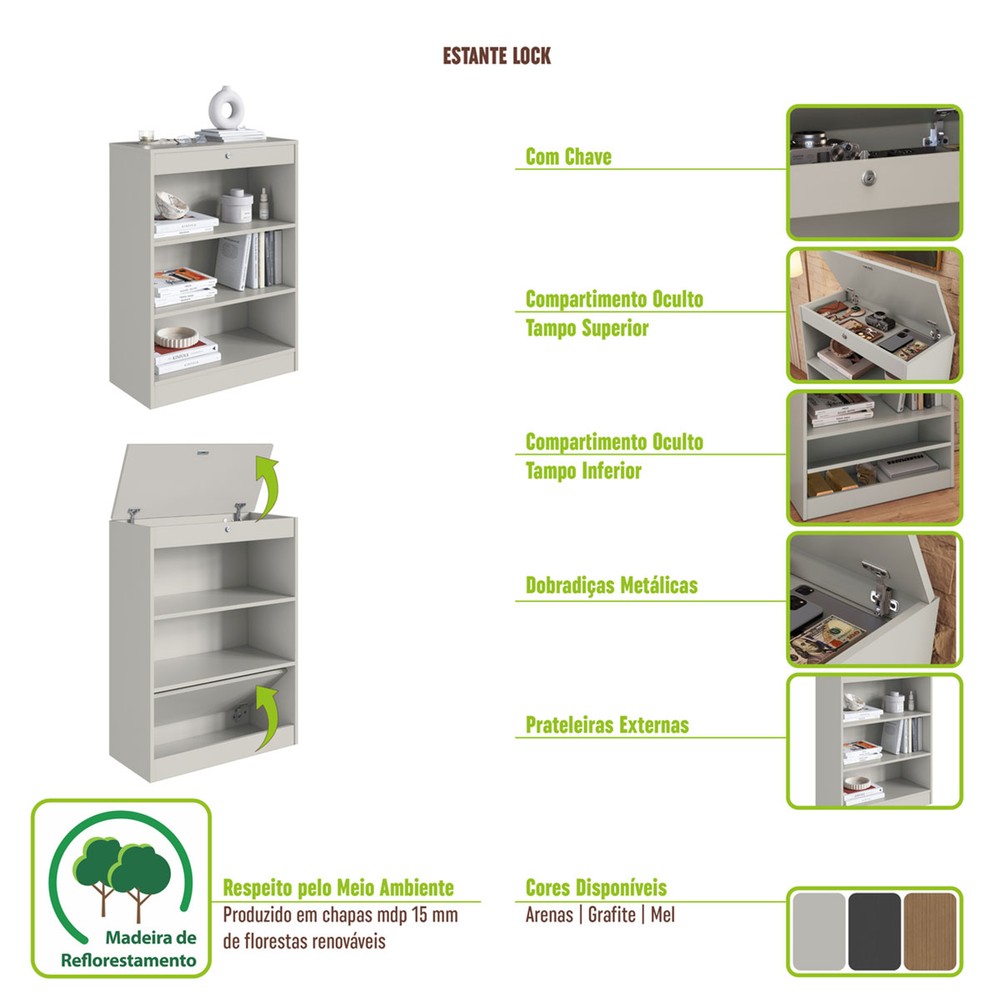 O(a) Estante para Livros Lock 2 Portas Grafite - Art In Móveis é produzido em MDP na escala de brilho Fosco, e possui um grau de dificuldade de montagem: Médio.