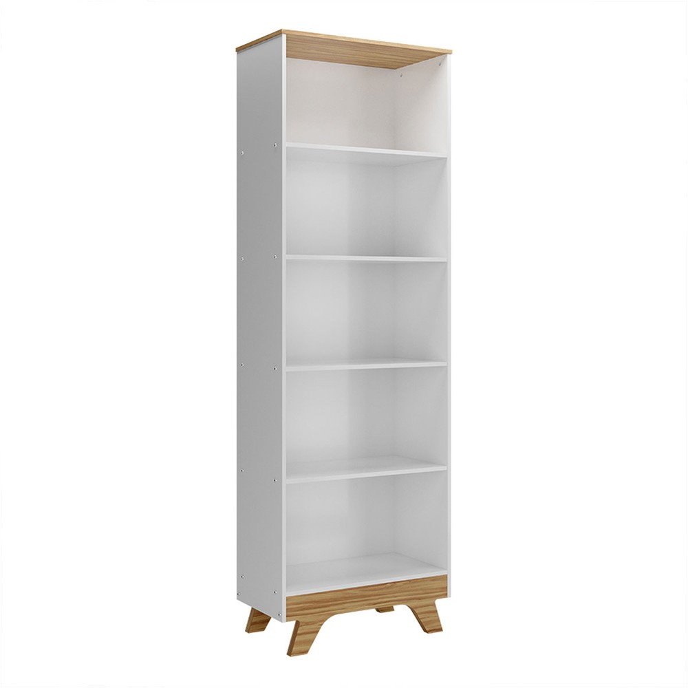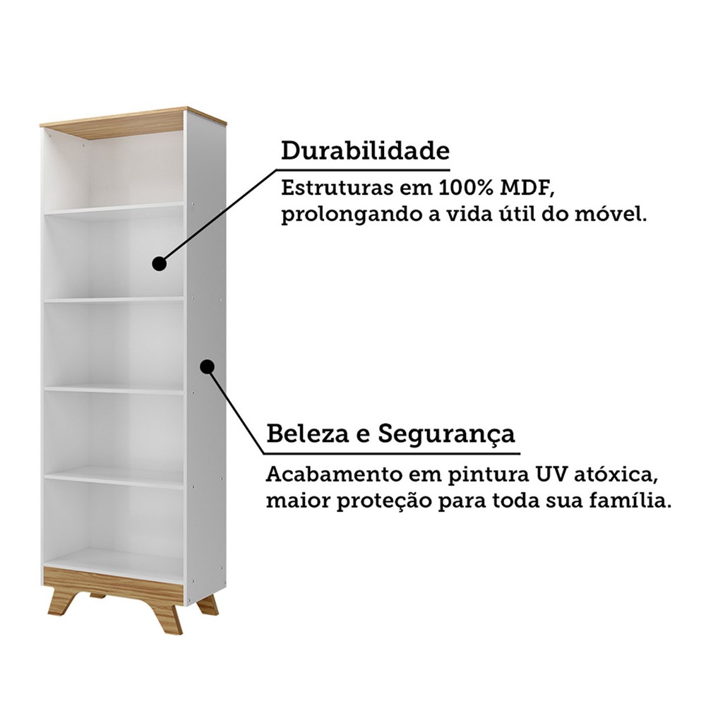 Estante para Livros Retrô 4 Prateleiras 100% Mdf Branco Brilho/Amêndoa - Móveis Peroba