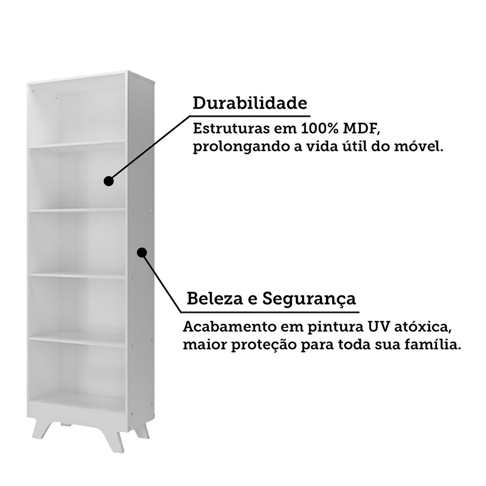 Estante para Livros Retrô 4 Prateleiras 100% Mdf Branco Brilho - Móveis Peroba