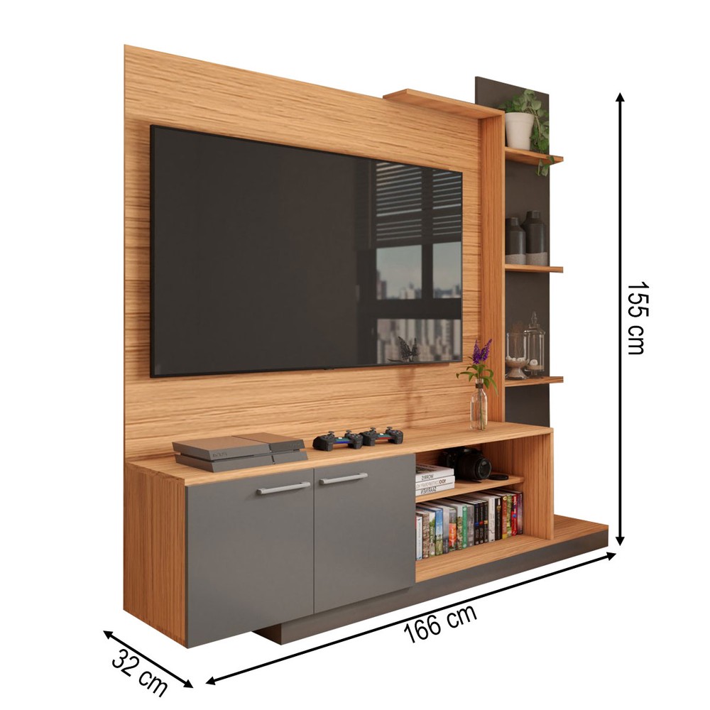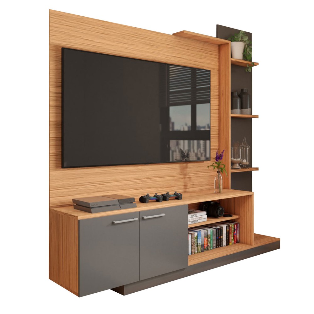 Estante para TV Até 55 Polegadas Castelar 2 Portas Cinamomo/Grafite - Panorama Móveis