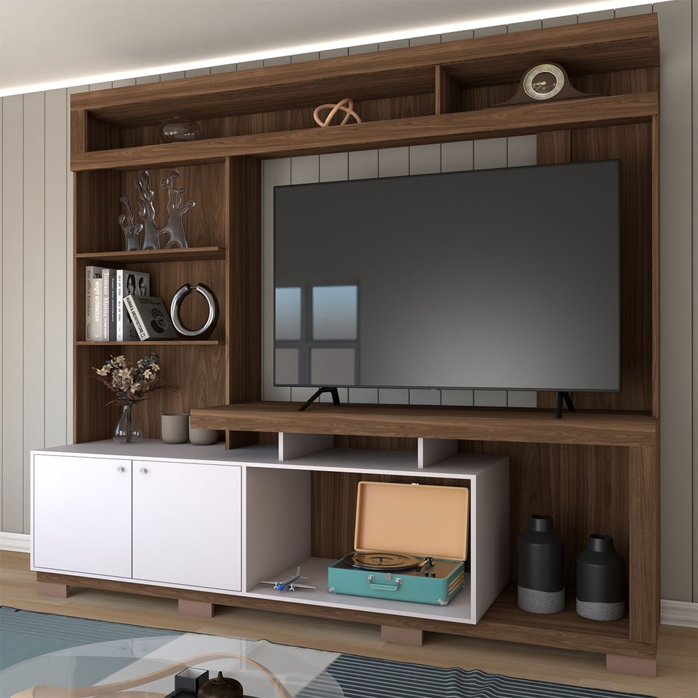 O(a) Estante para TV Até 55 Polegadas Cinema 2 Portas Nogueira San Remo/Off White - Panorama Móveis é produzido em MDP na escala de brilho Fosco, e possui um grau de dificuldade de montagem: Médio.