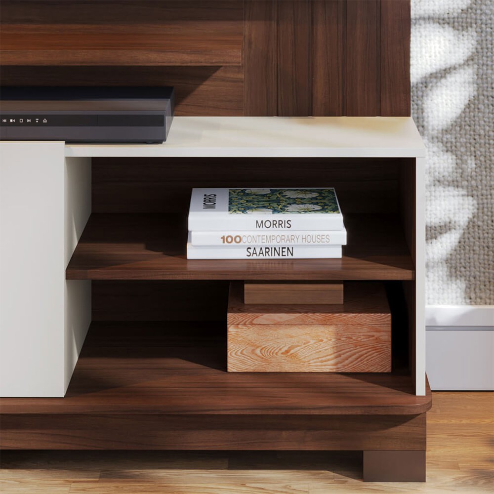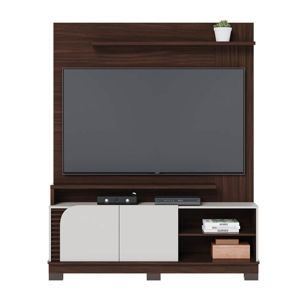 Estante para TV Até 65 Polegadas Jurerê 2 Portas Ripado Nogueira Real/Off White Matte - Colibri