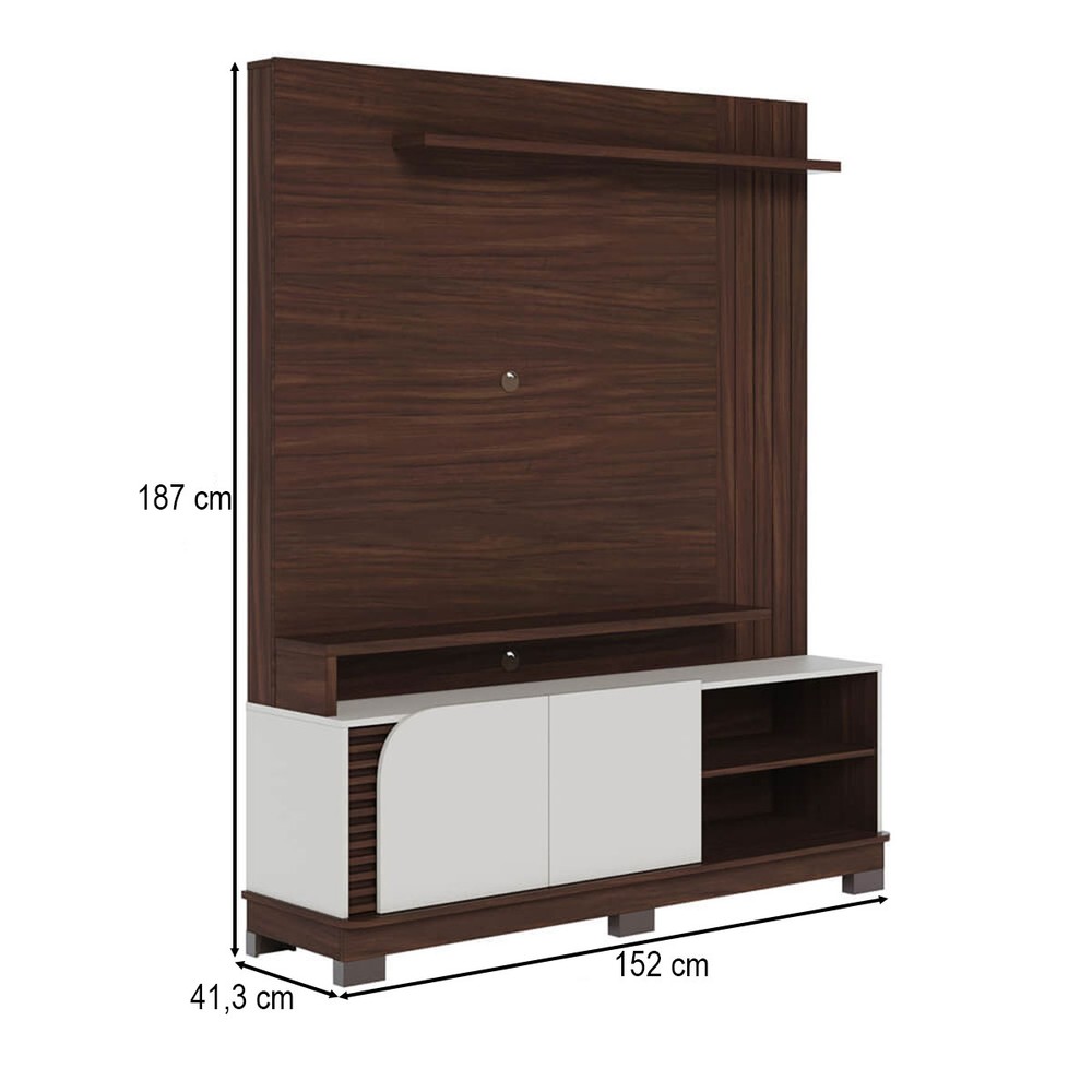 O(a) Estante para TV Até 65 Polegadas Jurerê 2 Portas Ripado Nogueira Real/Off White Matte - Colibri é produzido em MDF, MDP e HDF na escala de brilho Fosco, e possui um grau de dificuldade de montagem: Médio.