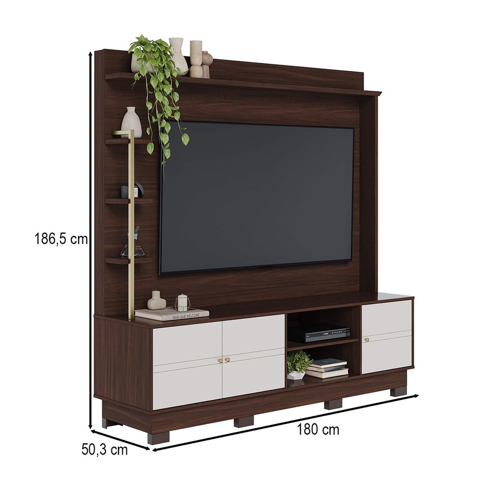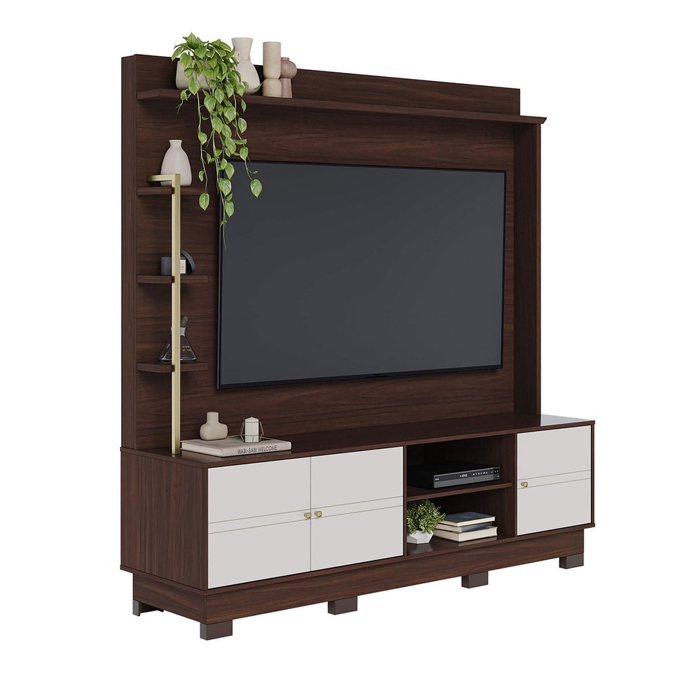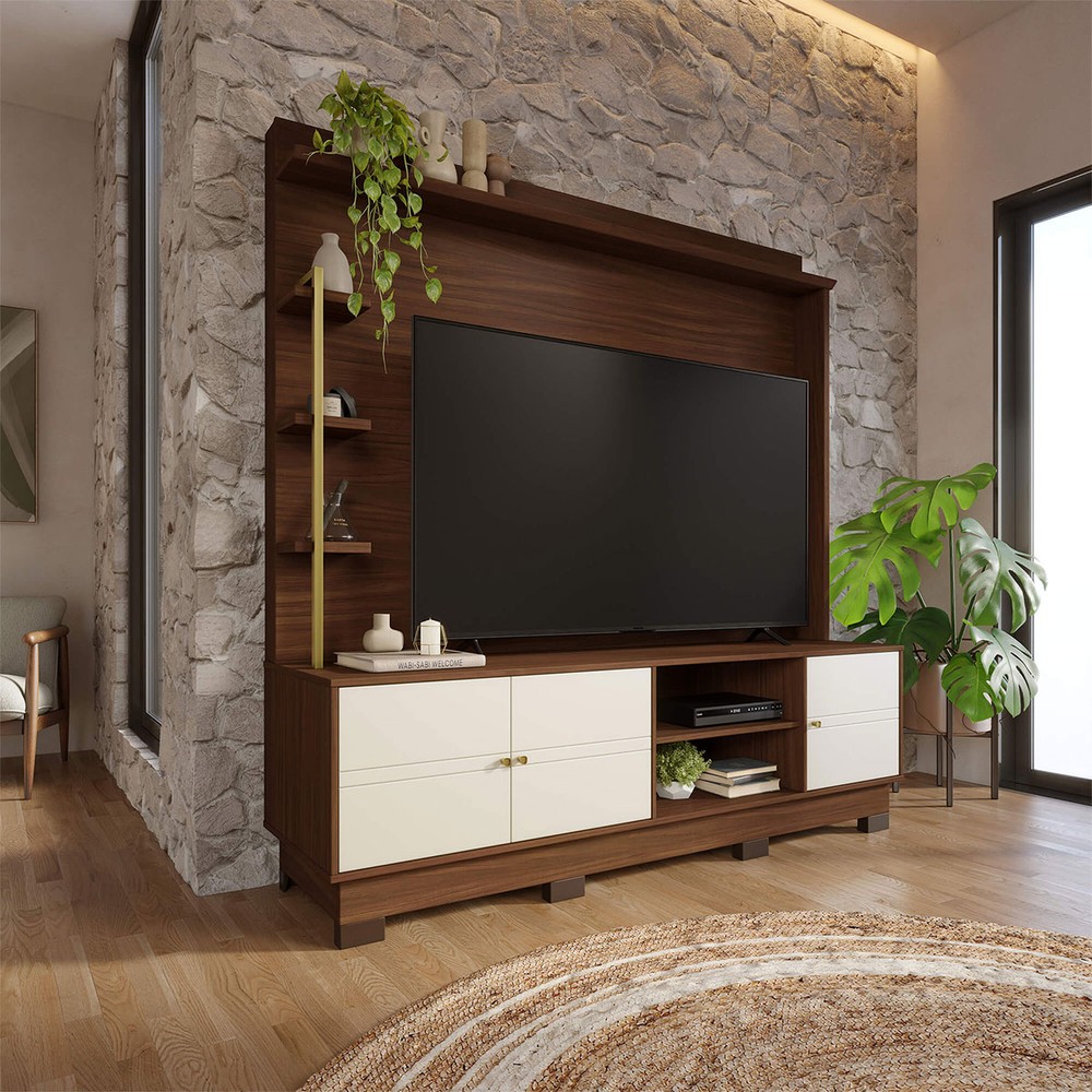 Estante para TV Até 70 Polegadas Paraná 3 Portas Nogueira Real/Off White Matte - Colibri
