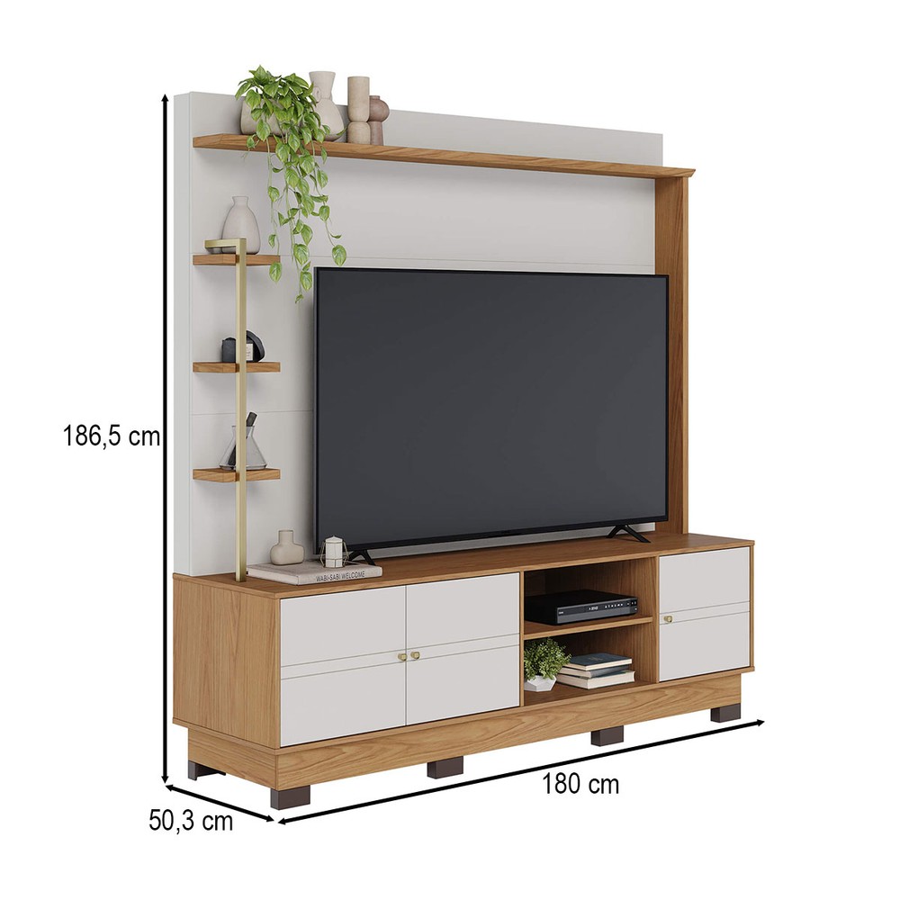 Estante para TV Até 70 Polegadas Paraná 3 Portas Off White Matte/Freijó - Colibri