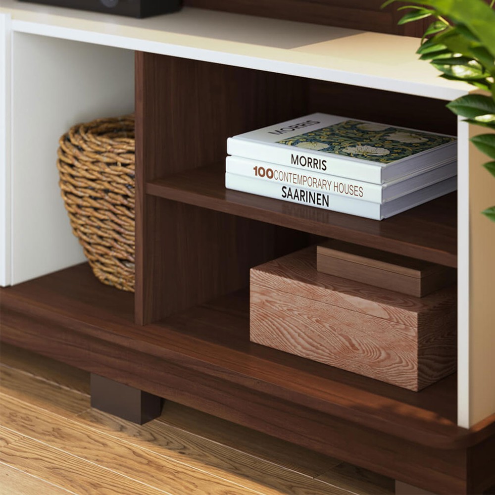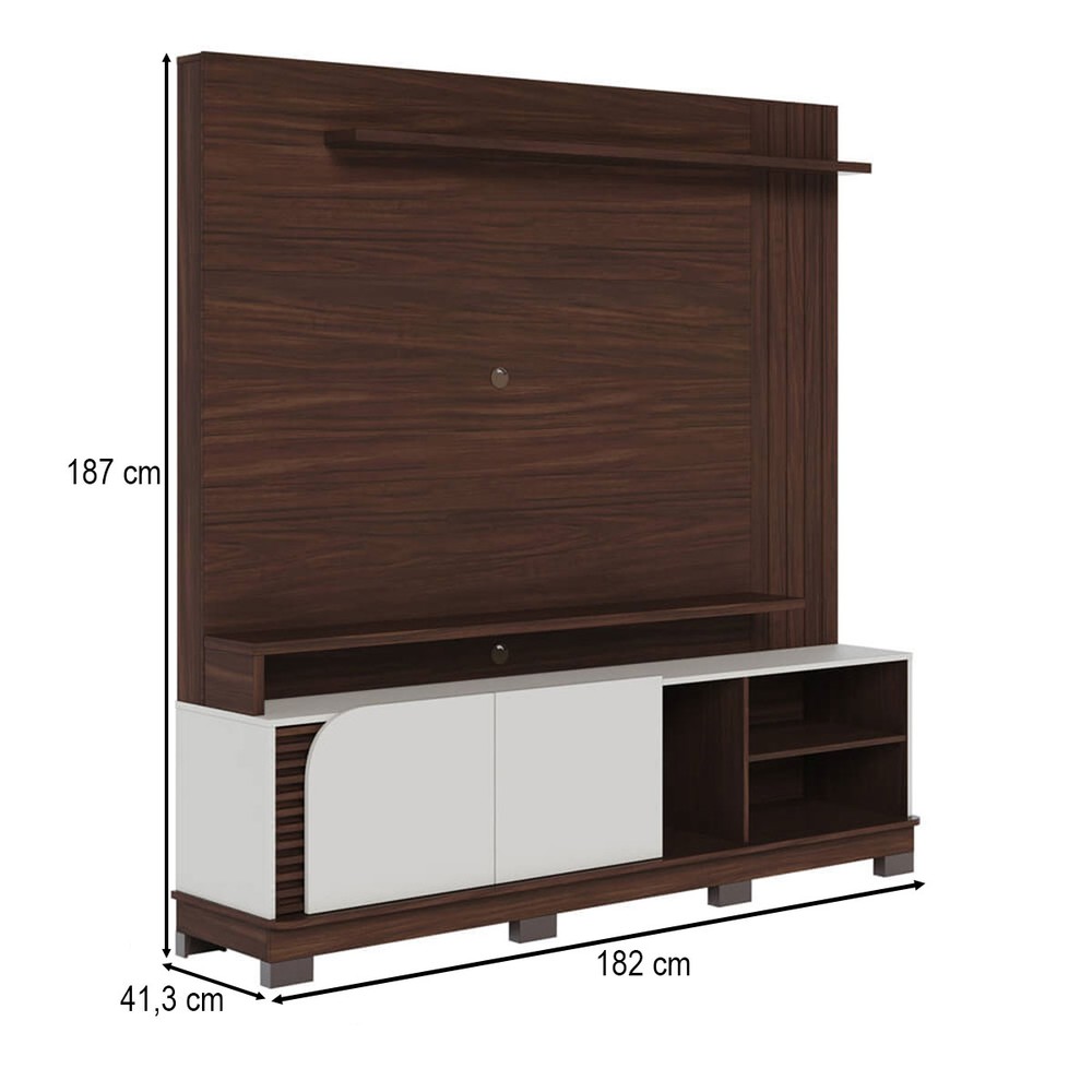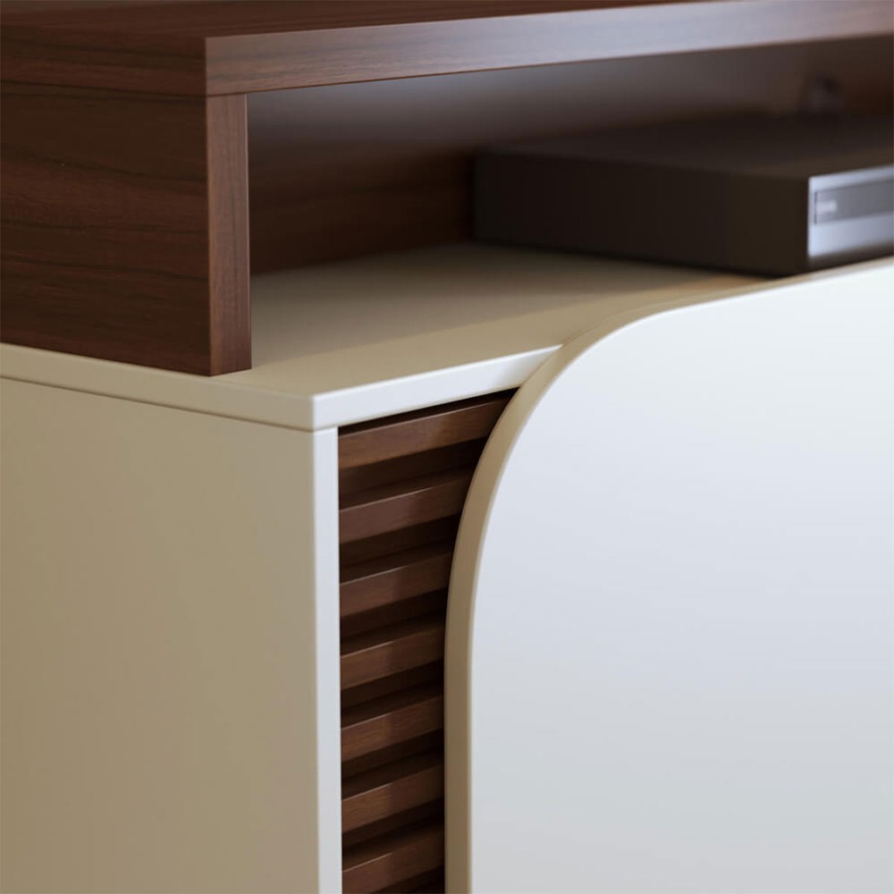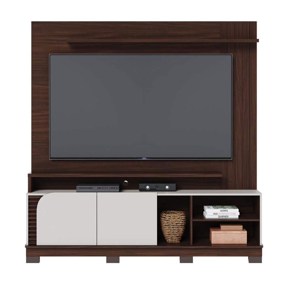 Estante para TV Até 75 Polegadas Jurerê 2 Portas Ripado Nogueira Real/Off White Matte - Colibri