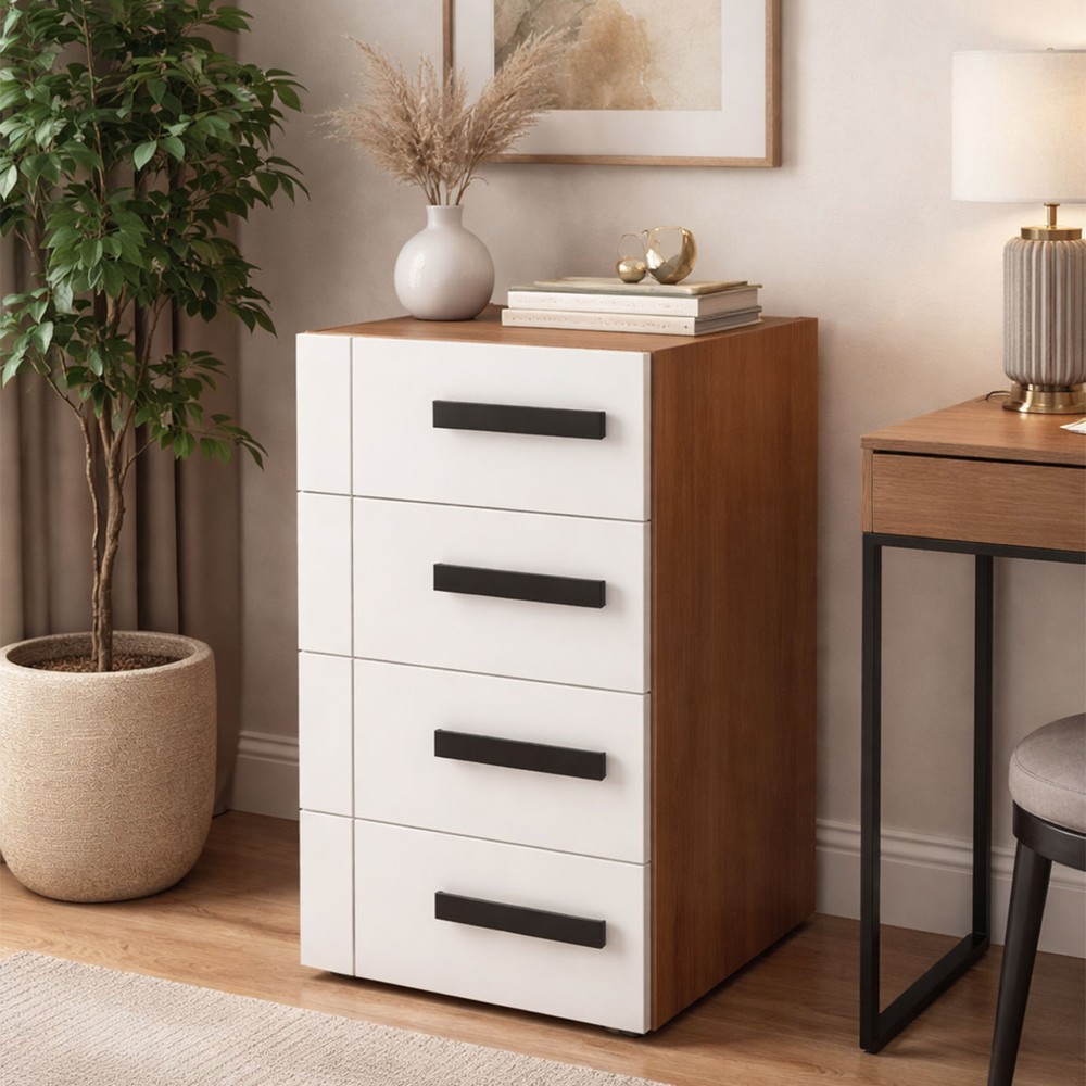 Gaveteiro Lisboa 4 Gavetas Branco/Freijó - Politorno