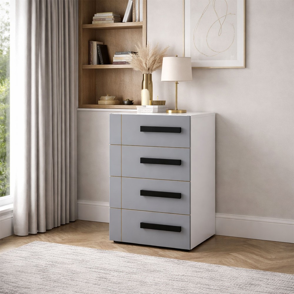 Gaveteiro Lisboa 4 Gavetas Cinza/Branco - Politorno