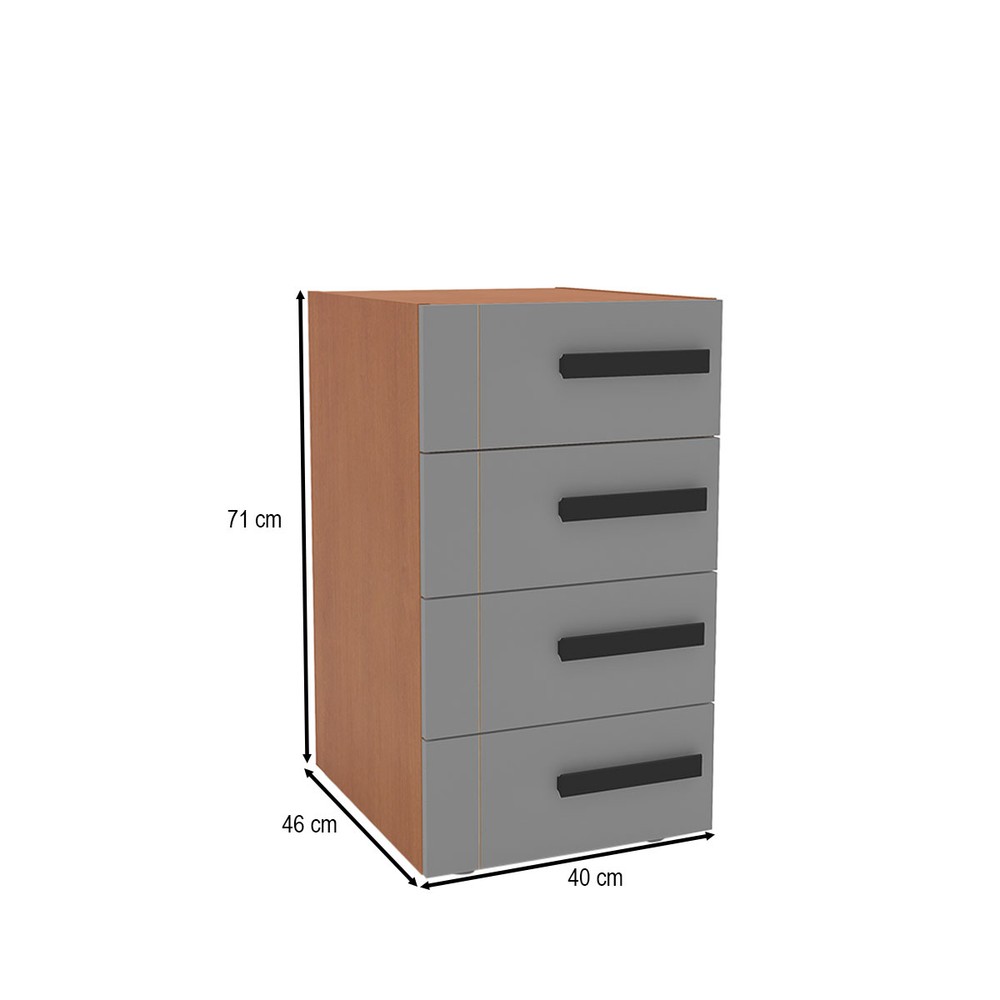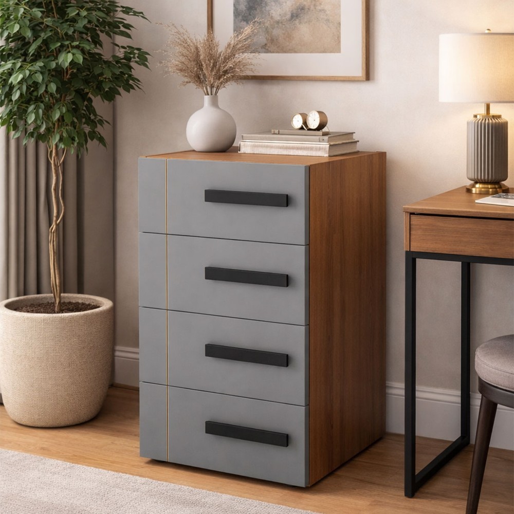 Gaveteiro Lisboa 4 Gavetas Cinza/Freijó - Politorno