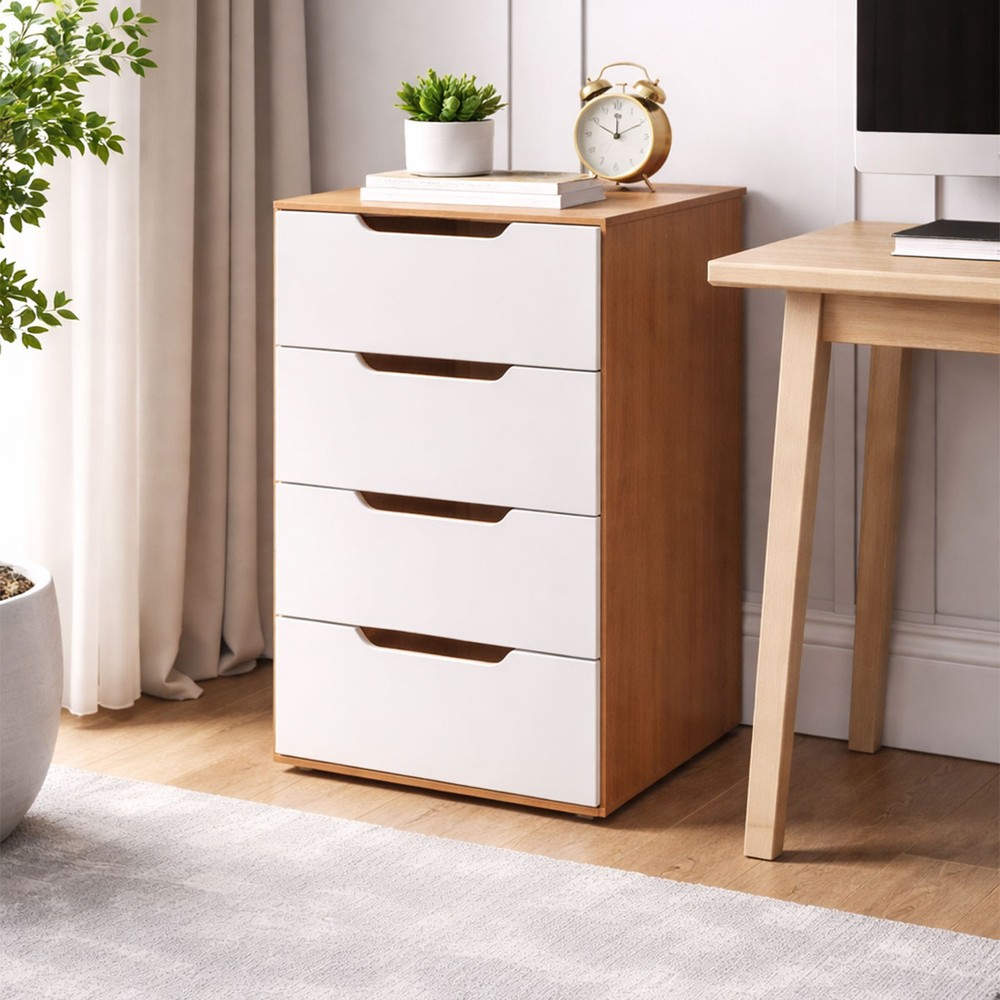 O(a) Gaveteiro Madri 4 Gavetas Branco/Freijó - Politorno é produzido em MDP na escala de brilho Semi-Fosco, e possui um grau de dificuldade de montagem: Médio.