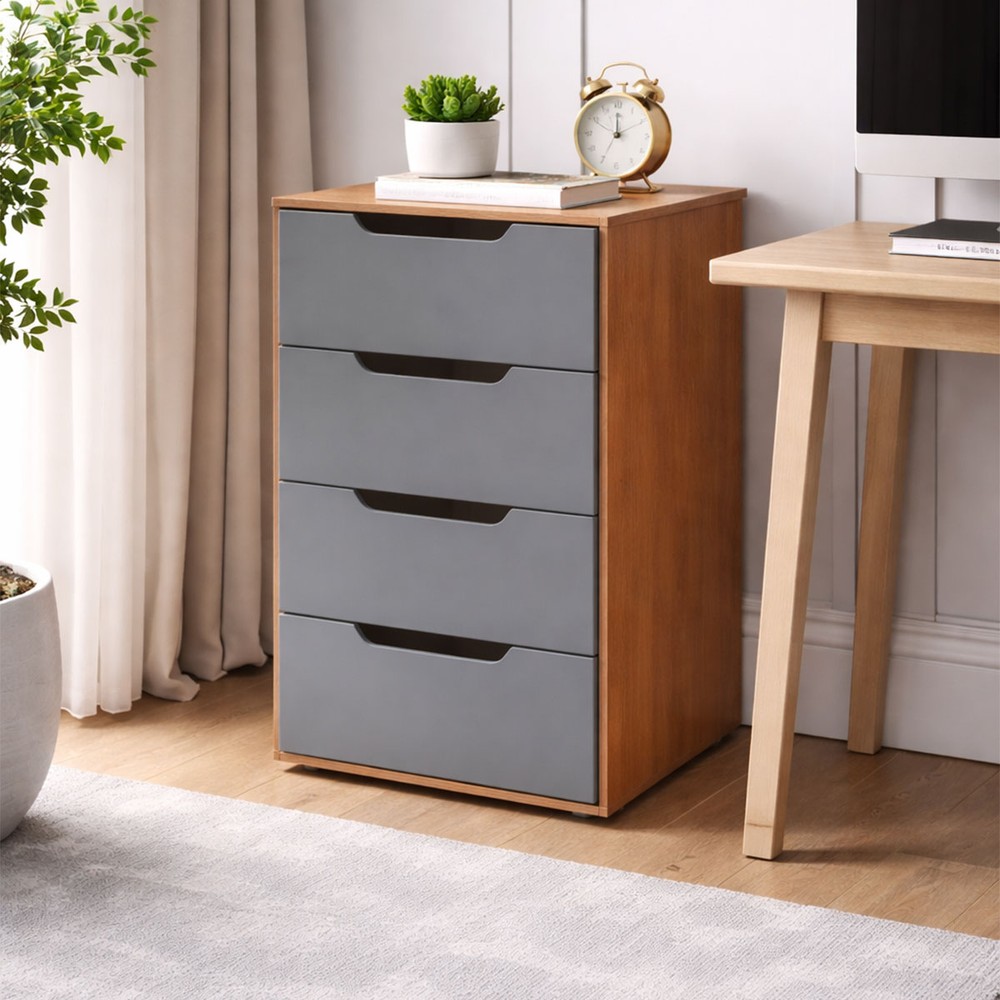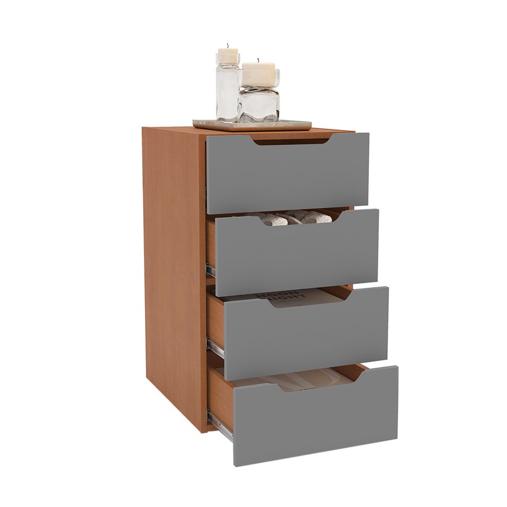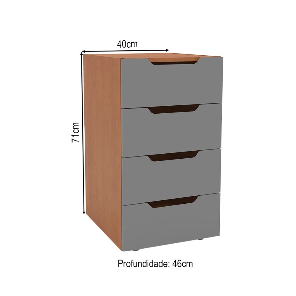O(a) Gaveteiro Madri 4 Gavetas Cinza/Freijó - Politorno é produzido em MDP na escala de brilho Semi-Fosco, e possui um grau de dificuldade de montagem: Médio.