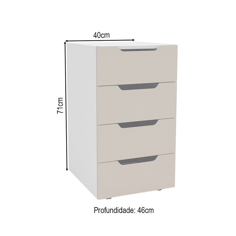 O(a) Gaveteiro Madri 4 Gavetas Creme/Branco - Politorno é produzido em MDP na escala de brilho Semi-Fosco, e possui um grau de dificuldade de montagem: Médio.