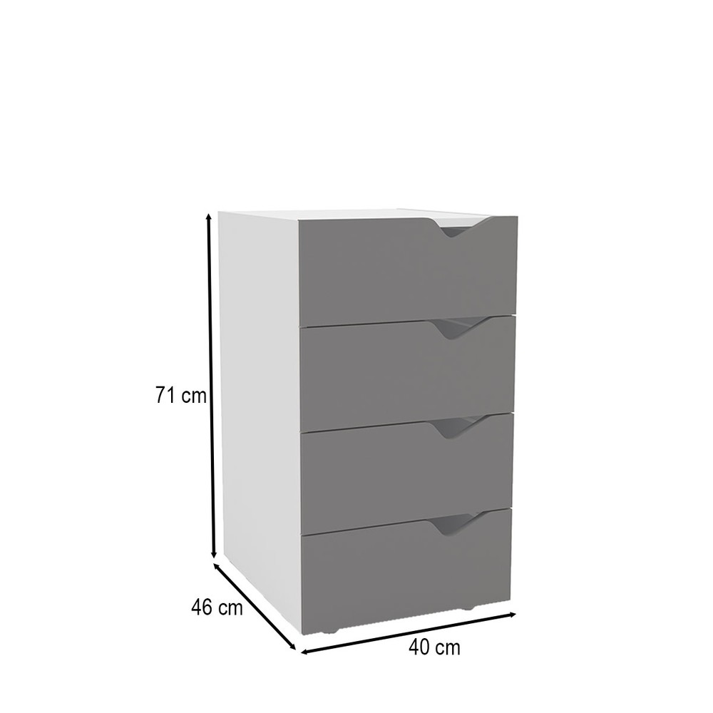 Gaveteiro Porto 4 Gavetas 40250684 Cinza/Branco - Politorno