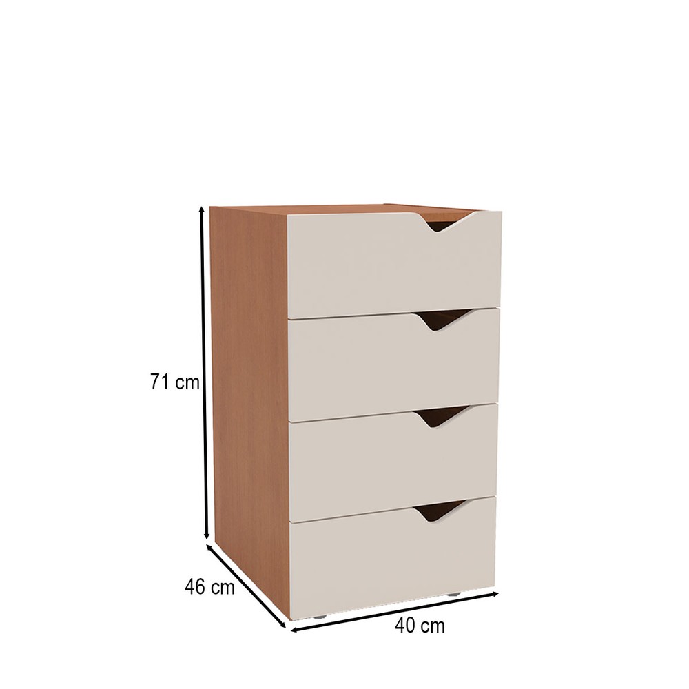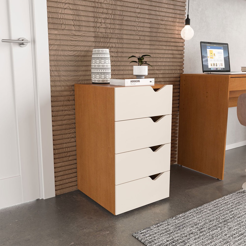Gaveteiro Porto 4 Gavetas 40250684 Creme/Freijó - Politorno