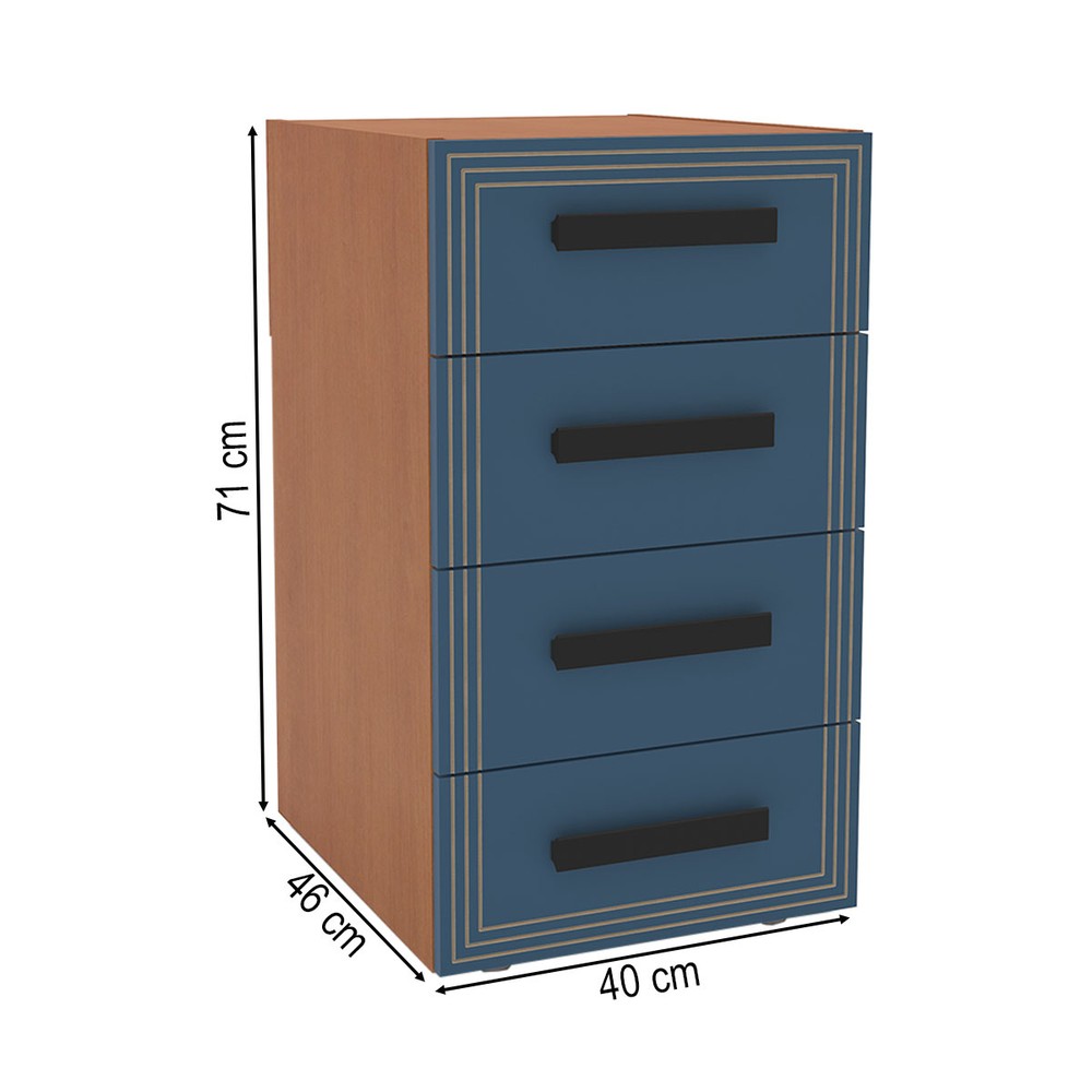 O(a) Gaveteiro Valência 4 Gavetas Azul/Freijó - Politorno é produzido em MDP na escala de brilho Semi-Fosco, e possui um grau de dificuldade de montagem: Médio.
