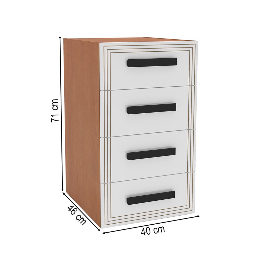 O(a) Gaveteiro Valência 4 Gavetas Branco/Freijó - Politorno é produzido em MDP na escala de brilho Semi-Fosco, e possui um grau de dificuldade de montagem: Médio.