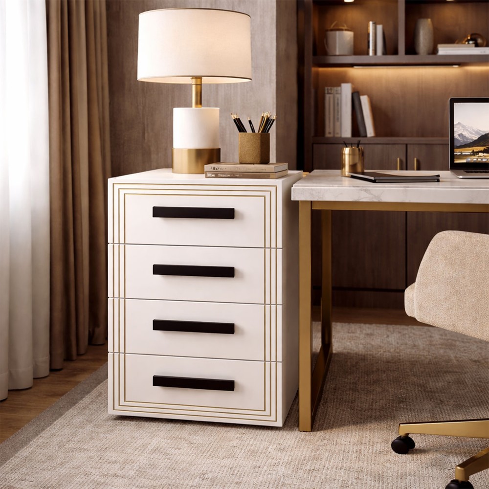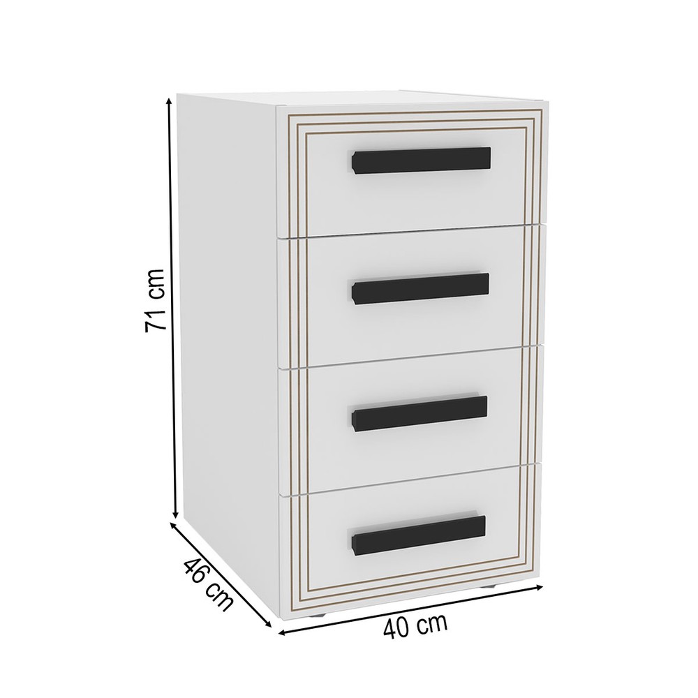 O(a) Gaveteiro Valência 4 Gavetas Branco - Politorno é produzido em MDP na escala de brilho Semi-Fosco, e possui um grau de dificuldade de montagem: Médio.