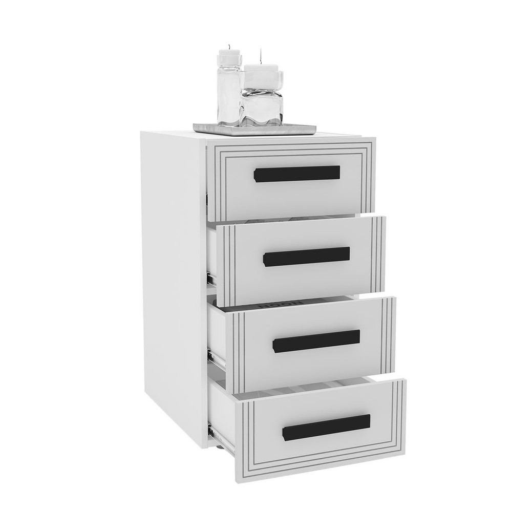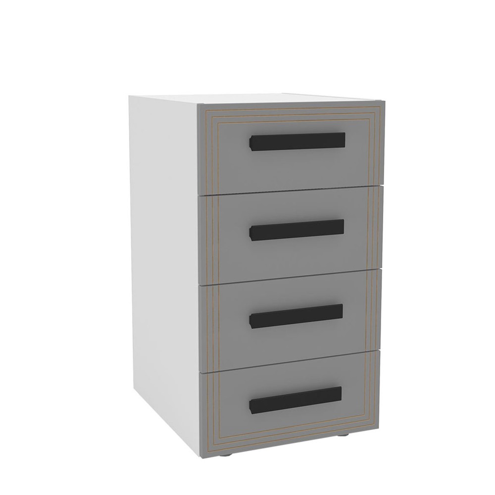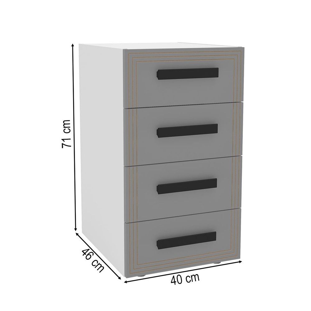 O(a) Gaveteiro Valência 4 Gavetas Cinza/Branco - Politorno é produzido em MDP na escala de brilho Semi-Fosco, e possui um grau de dificuldade de montagem: Médio.