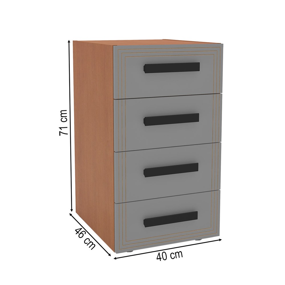 O(a) Gaveteiro Valência 4 Gavetas Cinza/Freijó - Politorno é produzido em MDP na escala de brilho Semi-Fosco, e possui um grau de dificuldade de montagem: Médio.