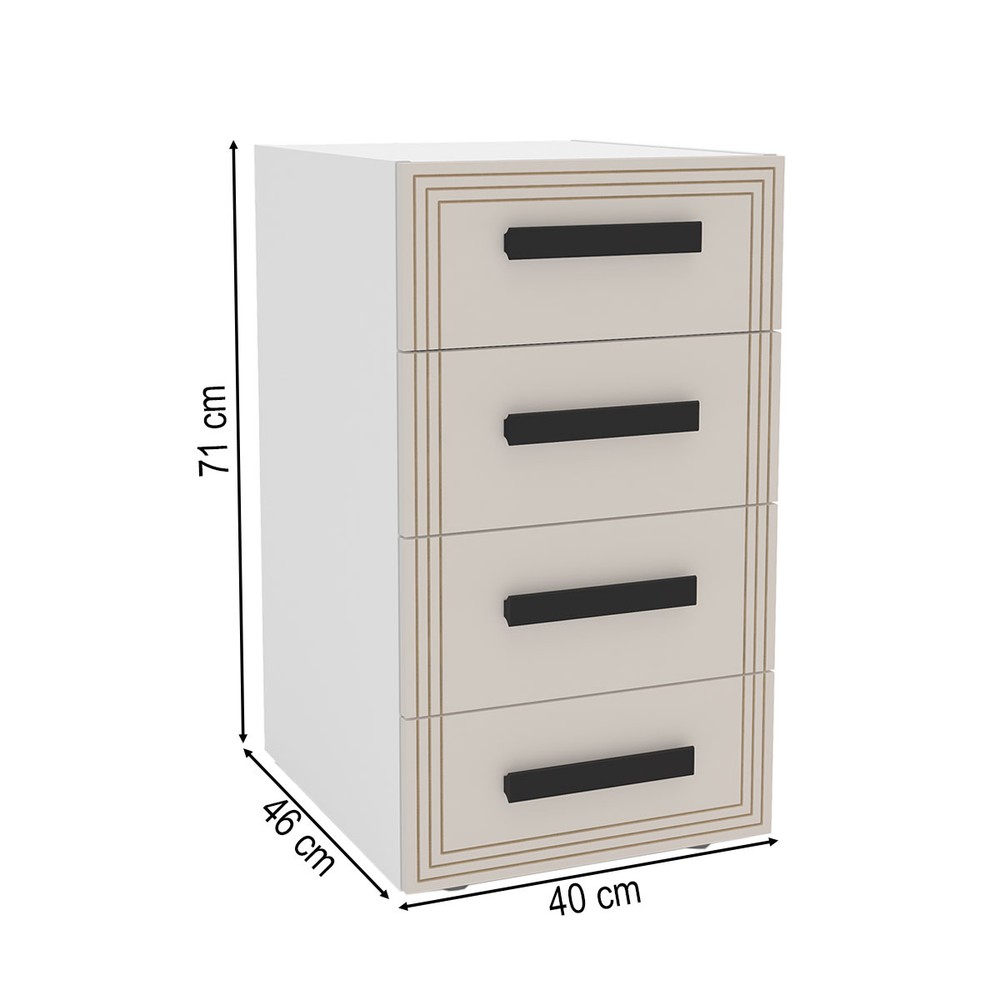 O(a) Gaveteiro Valência 4 Gavetas Creme/Branco - Politorno é produzido em MDP na escala de brilho Semi-Fosco, e possui um grau de dificuldade de montagem: Médio.