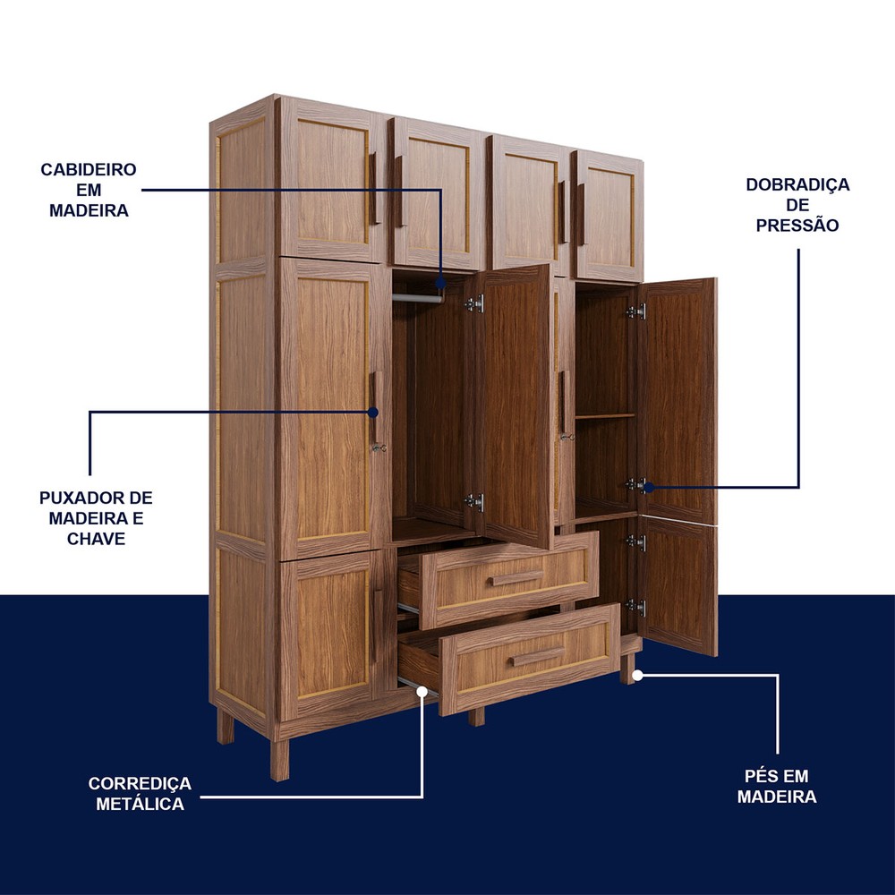 O(a) Guarda-Roupa Alagoas 10 Portas 2 Gavetas 5 Prateleiras com Espelho Ypê - Rodmóveis é produzido em Madeira Maciça e HDF na escala de brilho Fosco, e possui um grau de dificuldade de montagem: Médio.