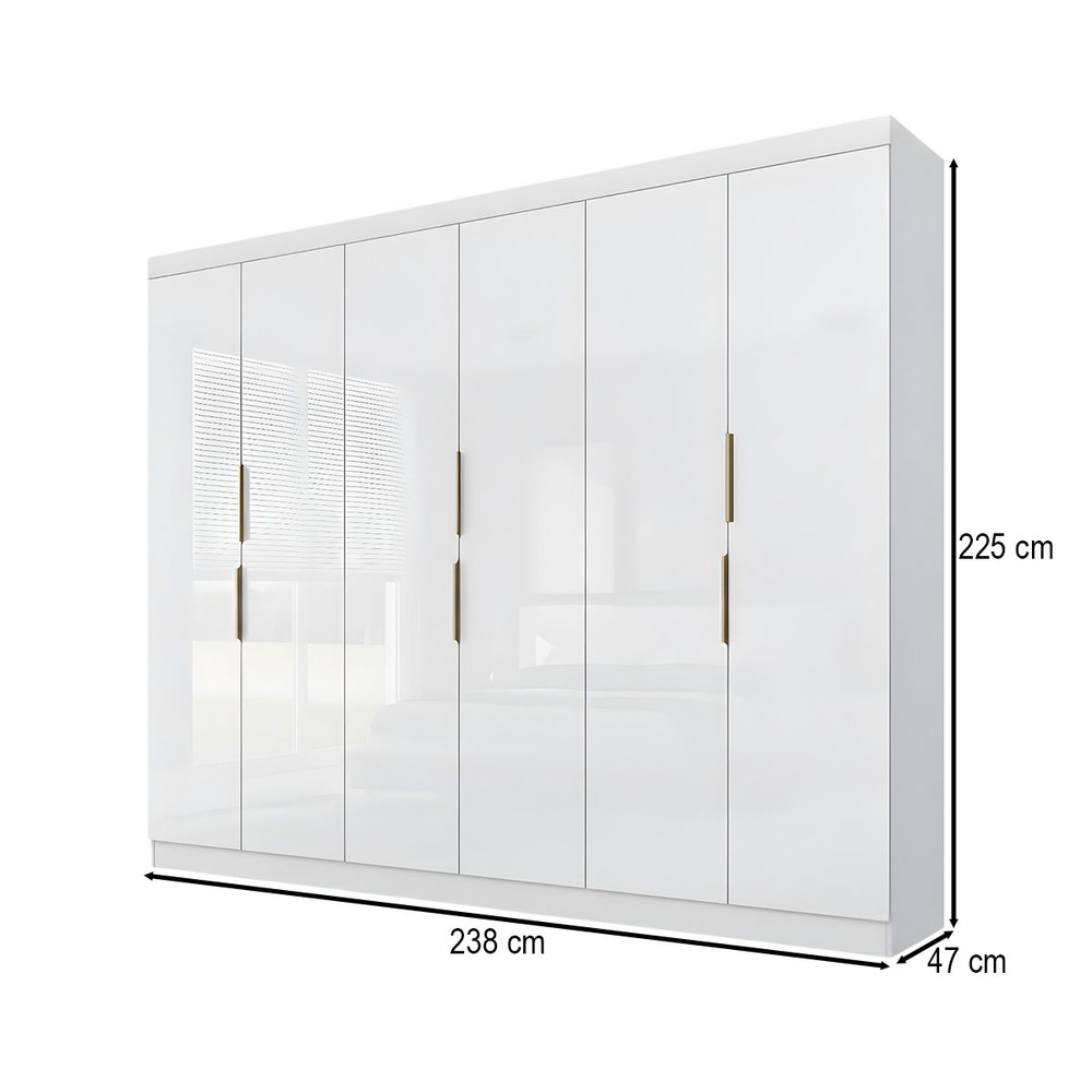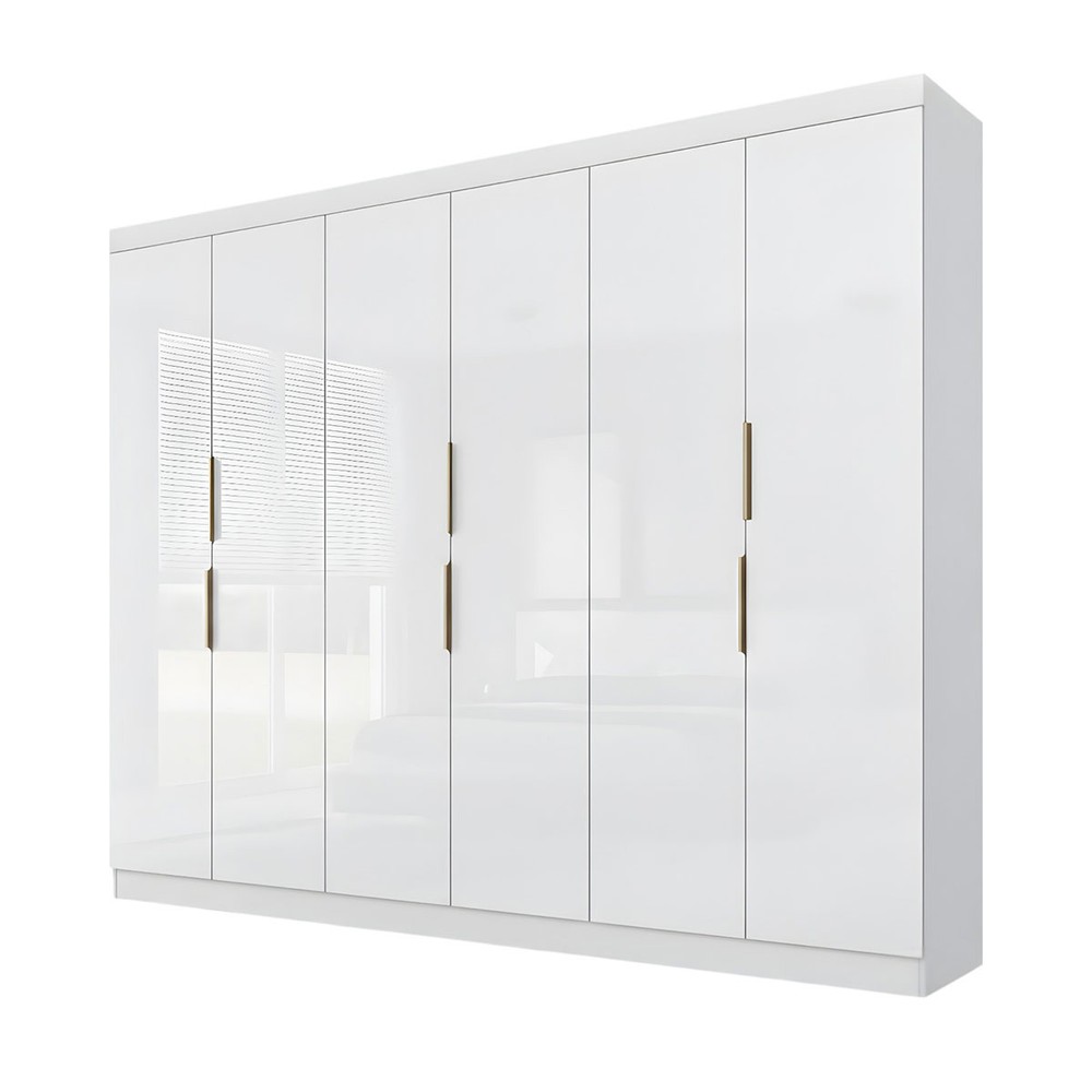 O(a) Guarda-Roupa Casal 12k 6 Portas 4 Gavetas Branco - Maxel é produzido em MDP na escala de brilho Brilhante, e possui um grau de dificuldade de montagem: Médio.