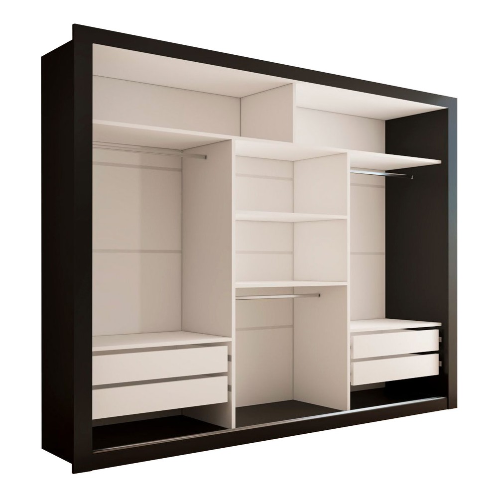 Guarda-Roupa Casal Agatha 3 Portas de Correr com Espelho 4 Gavetas Preto - Panorama Móveis