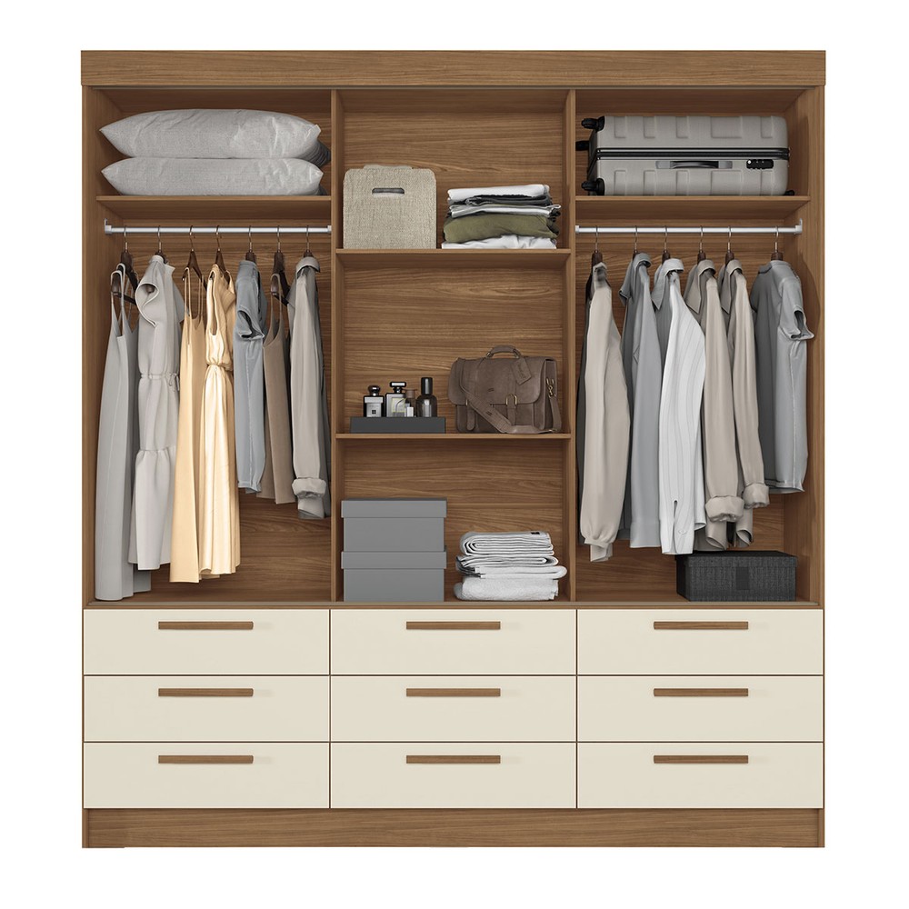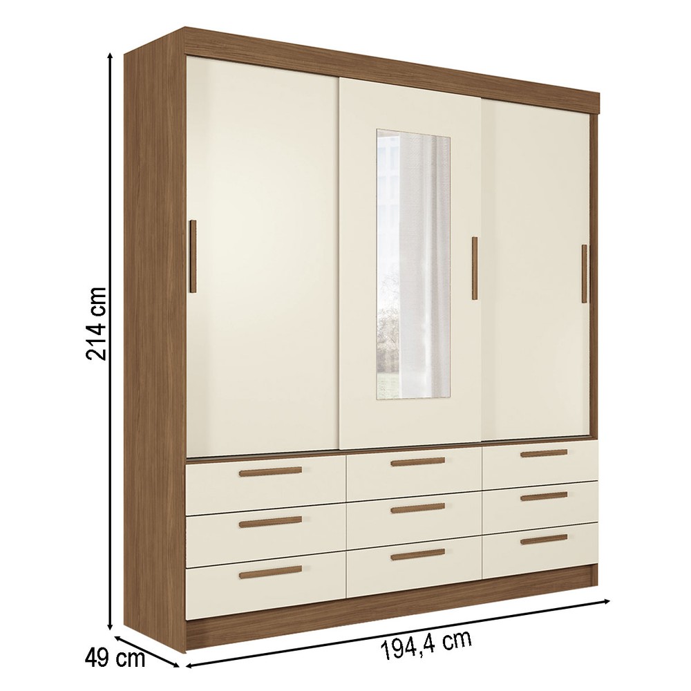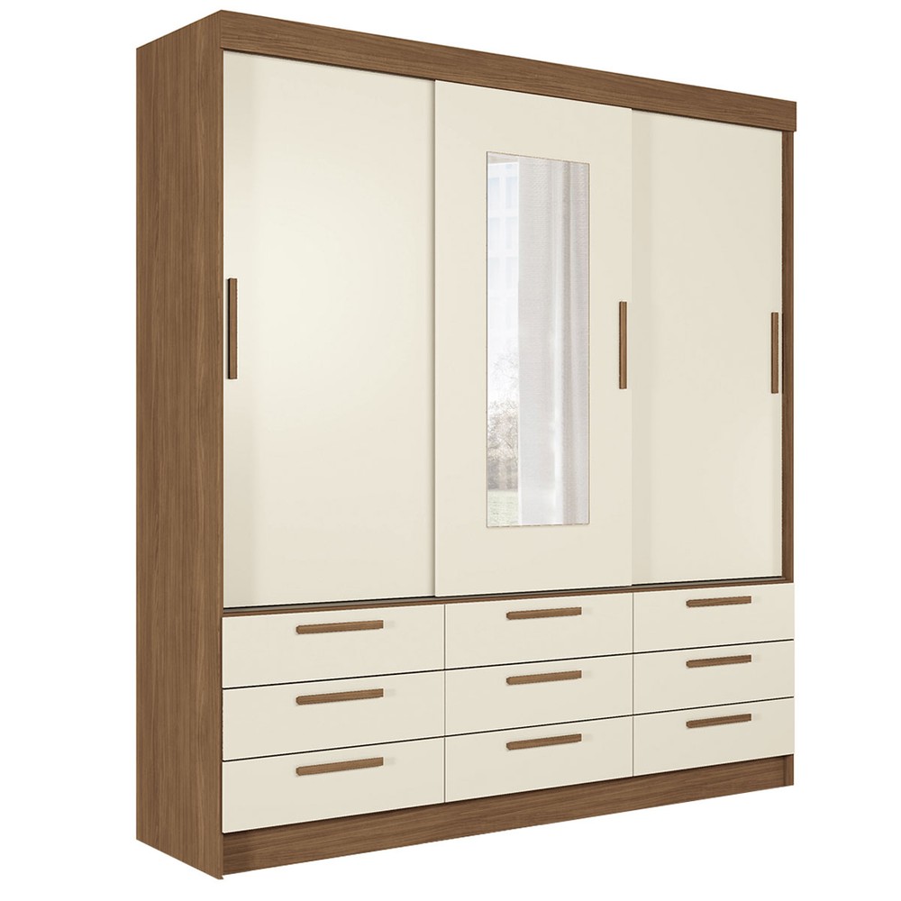 Guarda-Roupa Casal Albatroz 3 Portas 9 Gavetas Jatoba/Areia com Espelho - Pnr Móveis