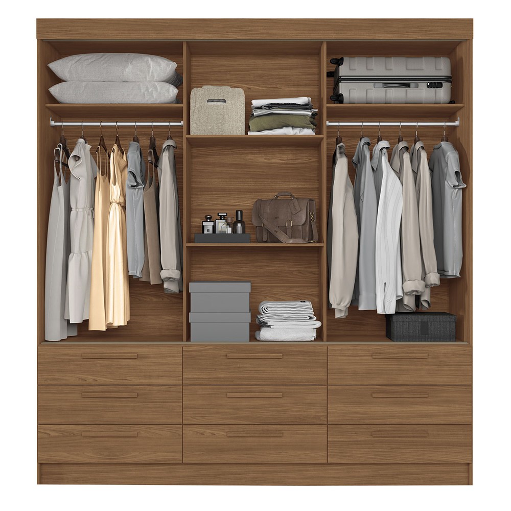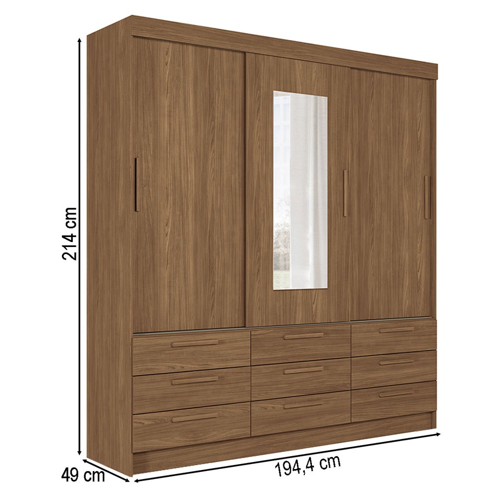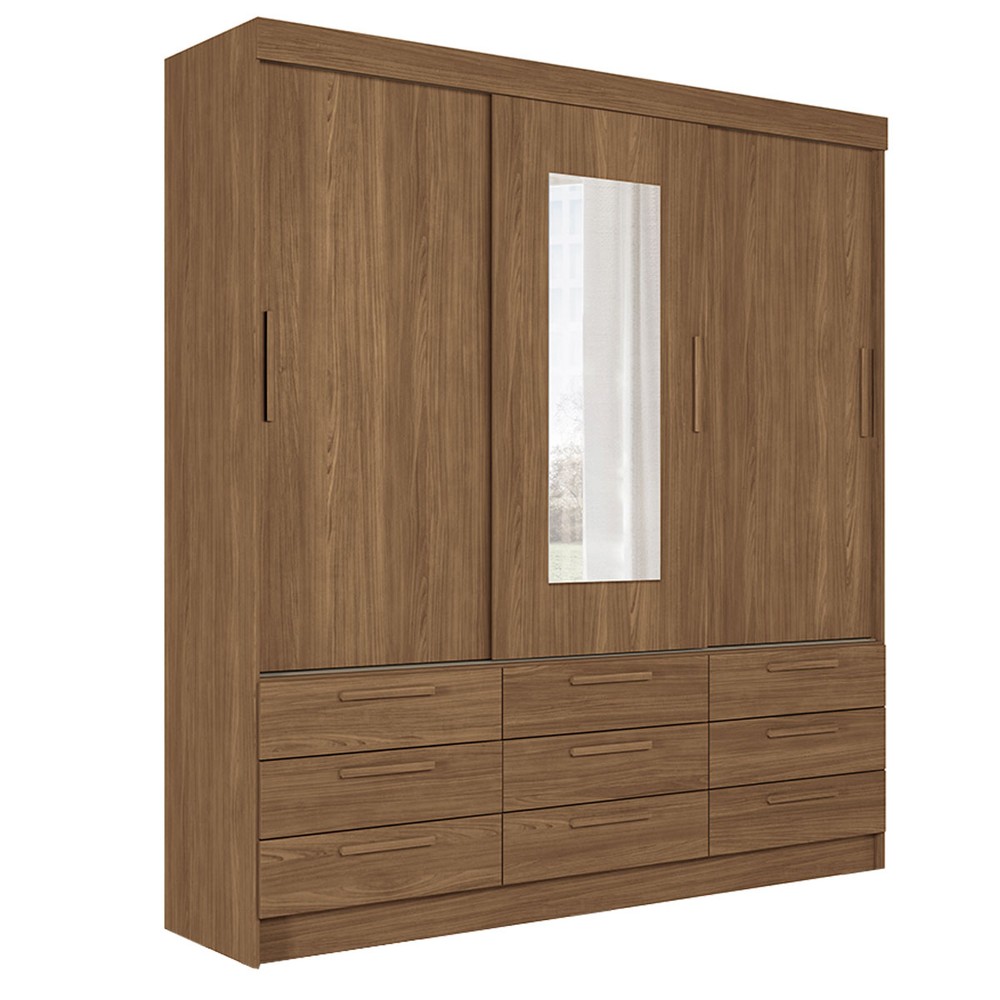 Guarda-Roupa Casal Albatroz 3 Portas 9 Gavetas Jatoba com Espelho - Pnr Móveis