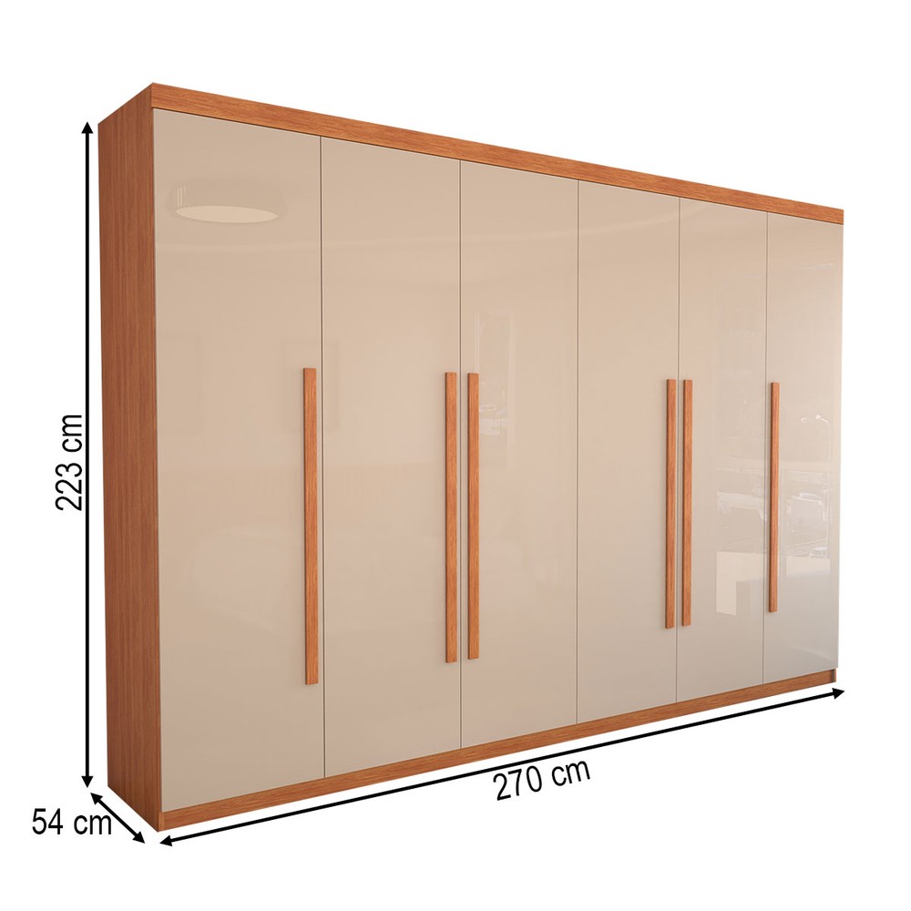 O(a) Guarda-Roupa Casal Alto Colorado 6 Portas 8 Gavetas 100% Mdf Cinamomo/Off White - Panorama Móveis é produzido em 100% MDF na escala de brilho Semi-Brilho, e possui um grau de dificuldade de montagem: Médio.