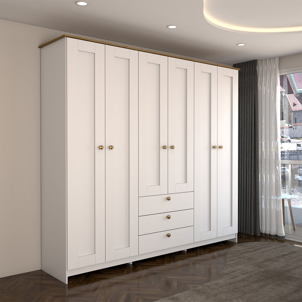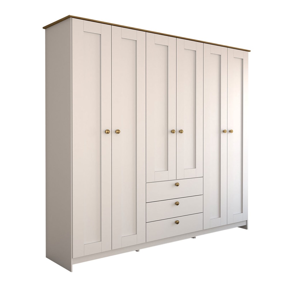 Guarda-Roupa Casal Americano 6 Portas 3 Gavetas Branco/Ipê - Panorama Móveis
