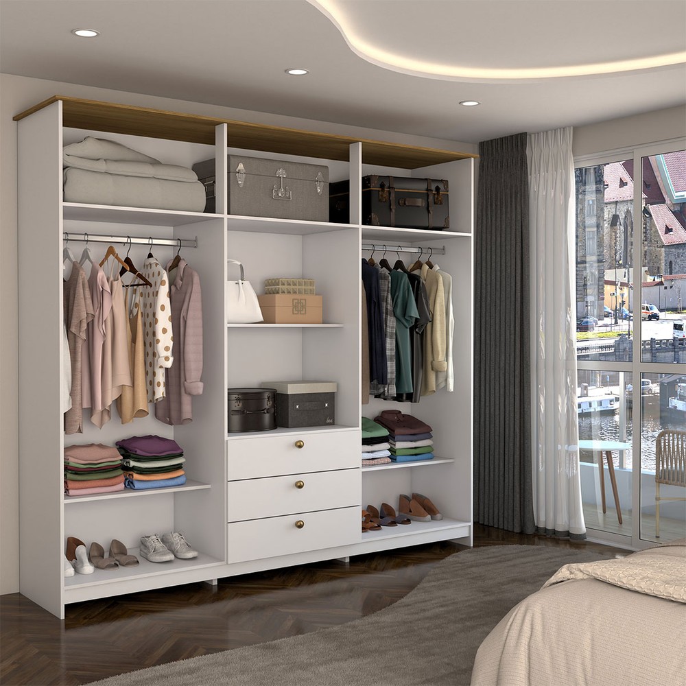 Acompanha Guarda-Roupa + Kit Ferragens + Manual de Montagem
