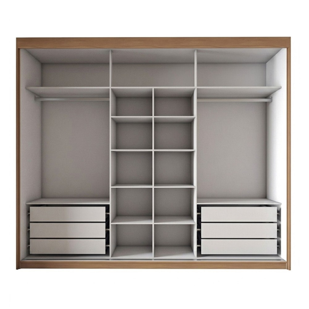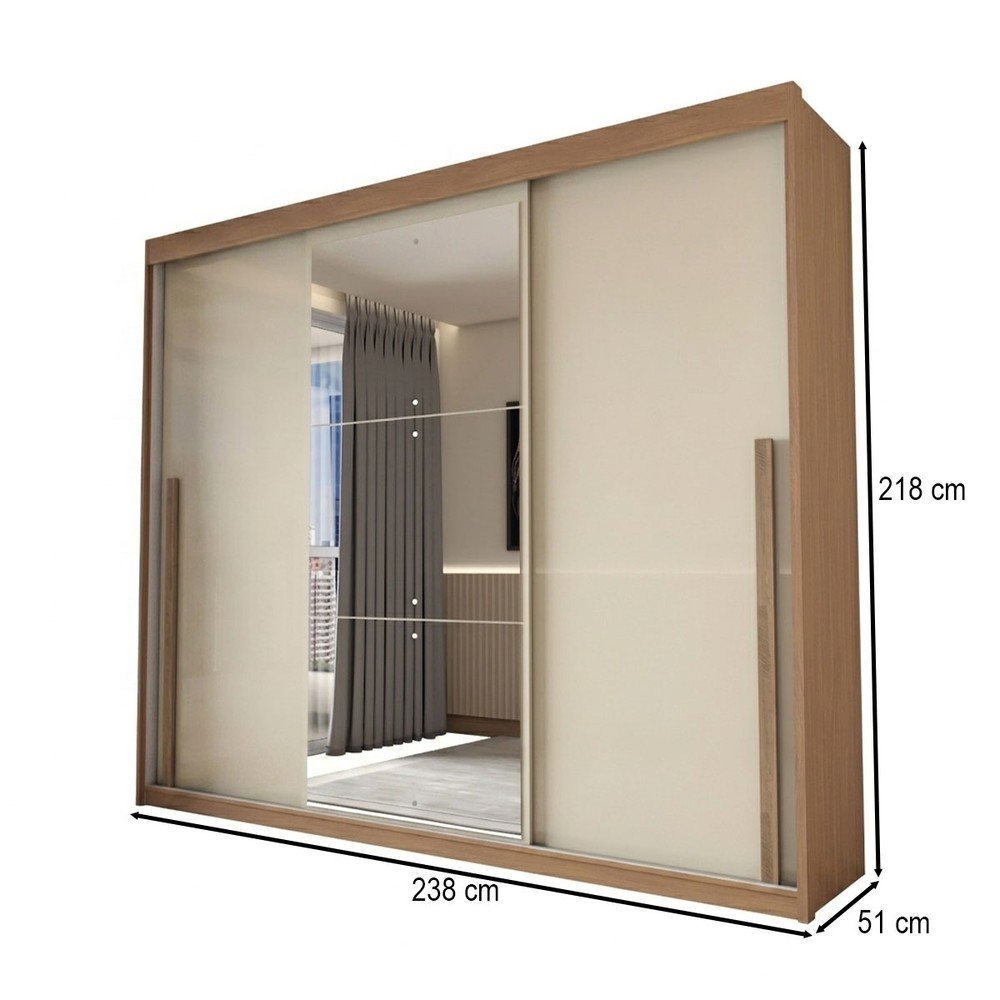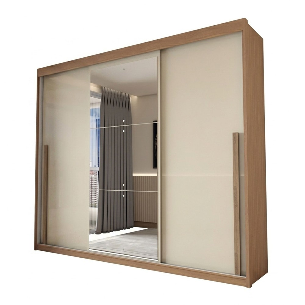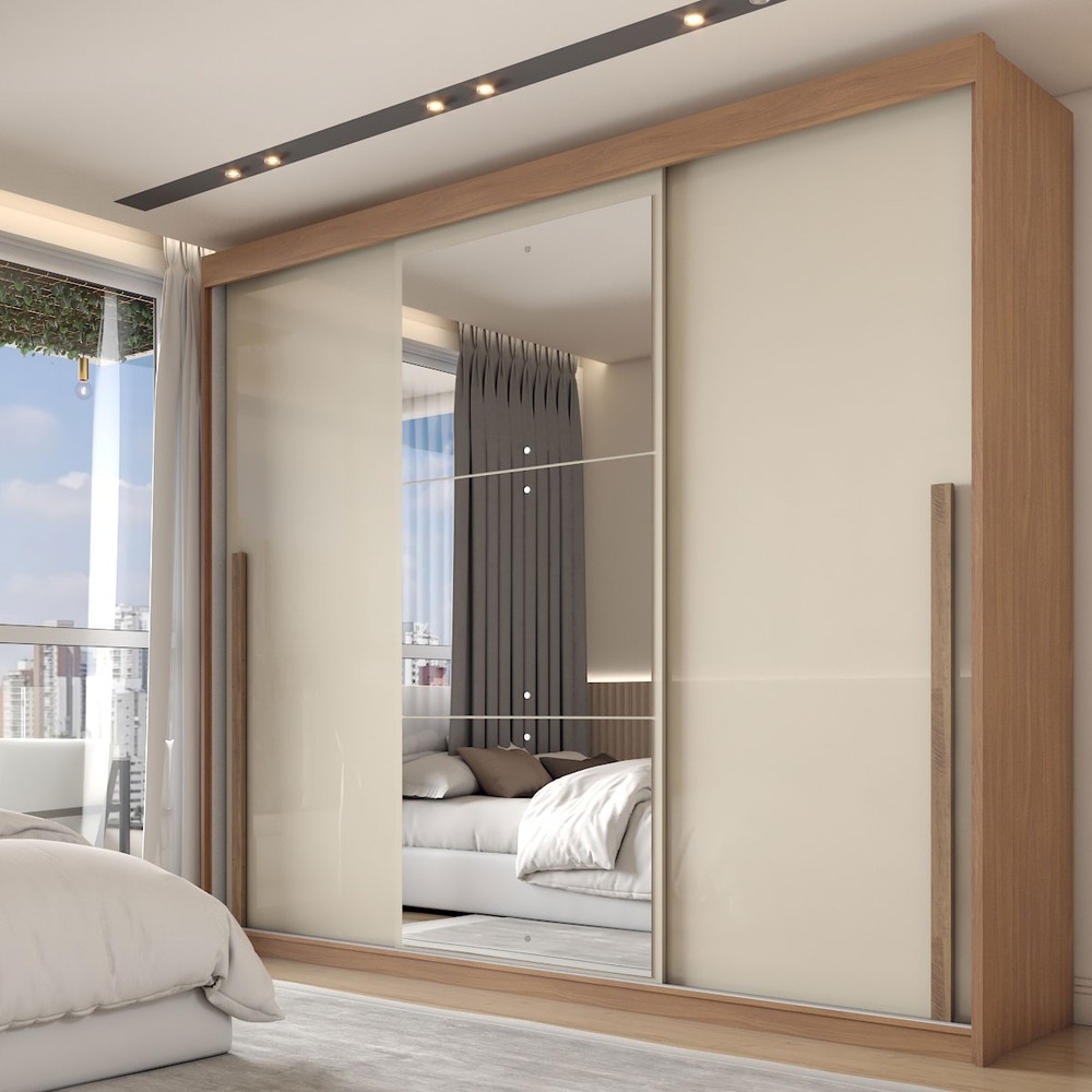 O(a) Guarda-Roupa Casal Arcadia 3 Portas 6 Gavetas com Espelho Cinamomo/Off White - Panorama Móveis é produzido em MDP na escala de brilho Brilhante e Fosco, e possui um grau de dificuldade de montagem: Médio.