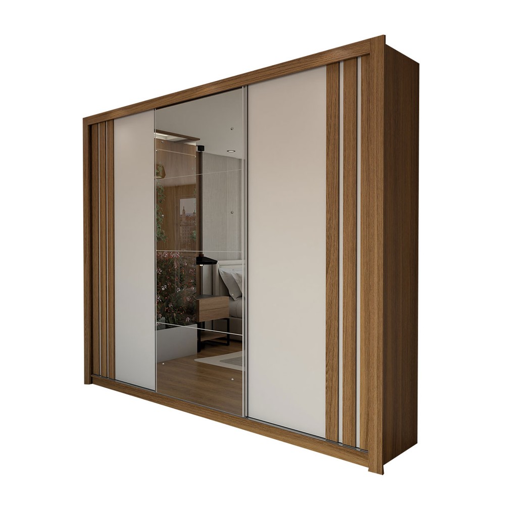 Guarda-Roupa Casal Argentina 3 Portas 2 Gavetas Flex com Espelho Amêndola Nude/Preto Prime Tx - Panorama Móveis