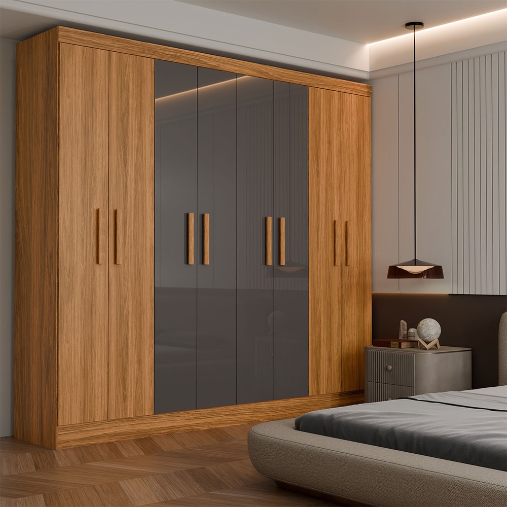 O(a) Guarda-Roupa Casal Artemis 8 Portas 2 Gavetas Cinamomo/Grafite - Panorama Móveis é produzido em MDP na escala de brilho Brilho, e possui um grau de dificuldade de montagem: Médio.