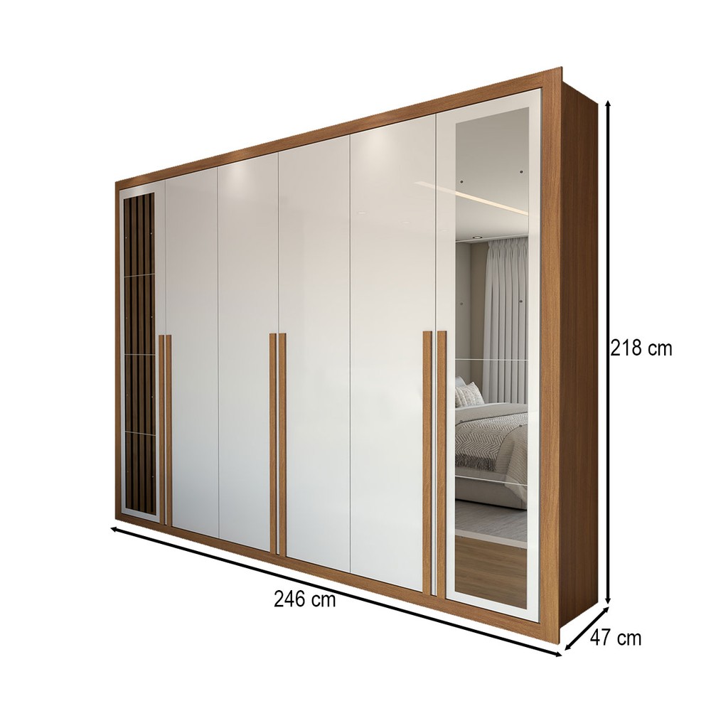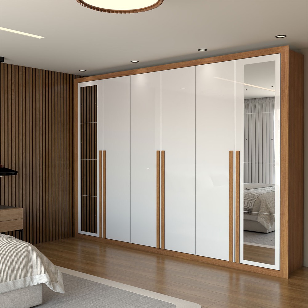 O(a) Guarda-Roupa Casal Aura 6 Portas 6 Gavetas com Espelho Cinamomo-Branco - Panorama Móveis é produzido em MDP na escala de brilho Fosco e Semi-Brilho, e possui um grau de dificuldade de montagem: Médio.