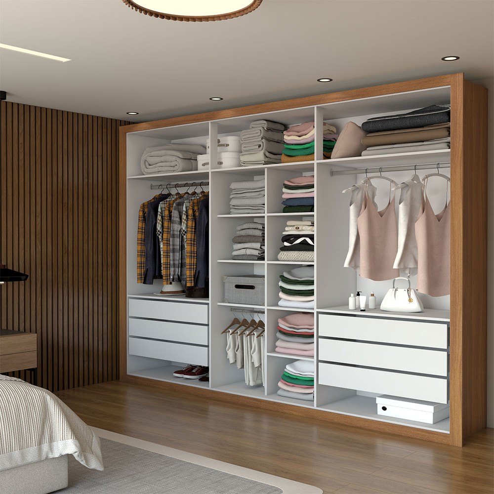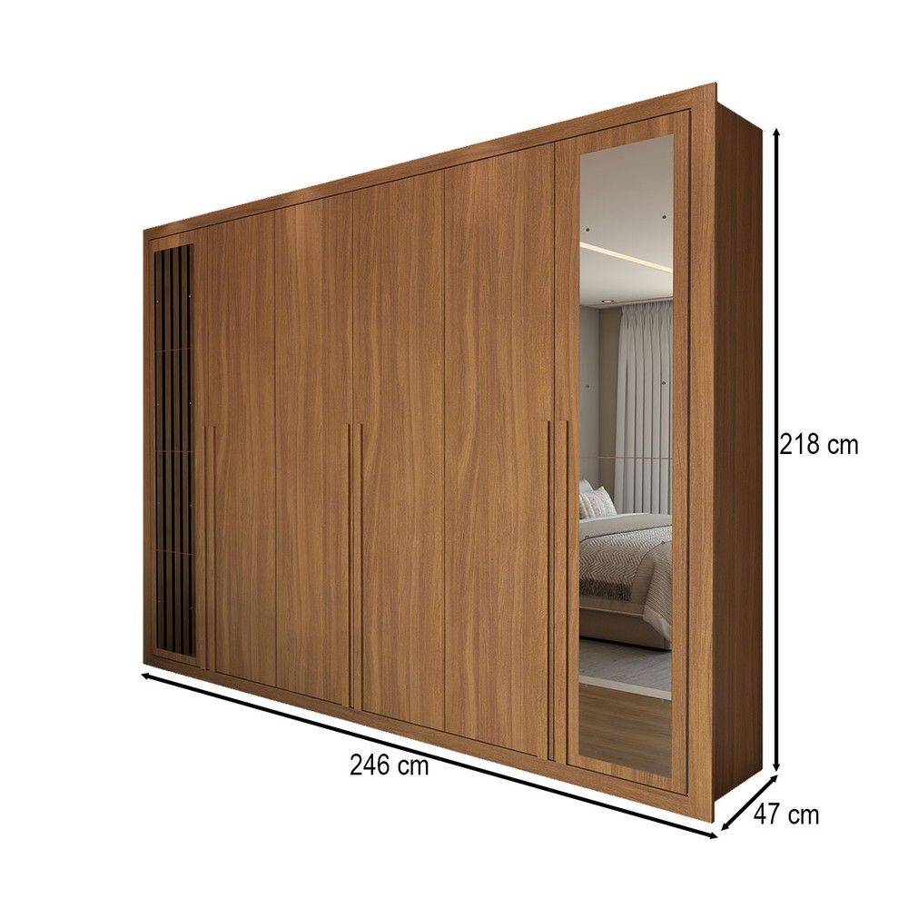 O(a) Guarda-Roupa Casal Aura 6 Portas 6 Gavetas com Espelho Cinamomo - Panorama Móveis é produzido em MDP na escala de brilho Fosco e Semi-Brilho, e possui um grau de dificuldade de montagem: Médio.