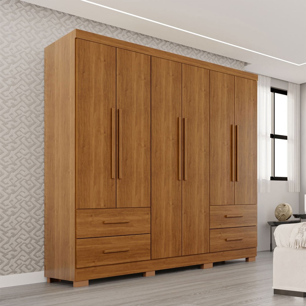 O(a) Guarda-Roupa Casal Balder Premium 6 Portas 4 Gavetas com Pés Cinamomo - Pnr Móveis é produzido em MDP na escala de brilho Semi-Fosco, e possui um grau de dificuldade de montagem: Médio.