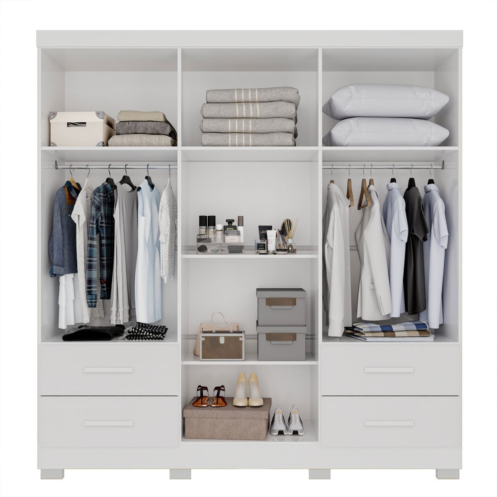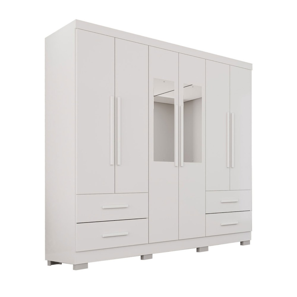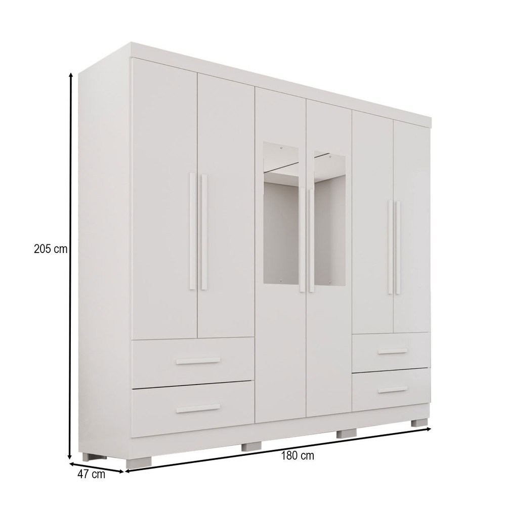 O(a) Guarda-Roupa Casal Balder Premium 6 Portas 4 Gavetas com Pés e Espelho Branco - Pnr Móveis é produzido em MDP na escala de brilho Semi-Fosco, e possui um grau de dificuldade de montagem: Médio.