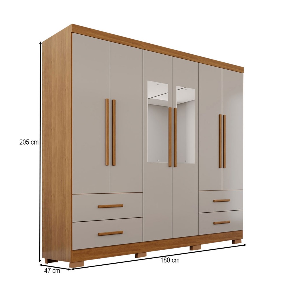 O(a) Guarda-Roupa Casal Balder Premium 6 Portas 4 Gavetas com Pés e Espelho Cinamomo/Off White - Pnr Móveis é produzido em MDP na escala de brilho Semi-Fosco, e possui um grau de dificuldade de montagem: Médio.
