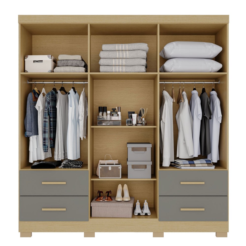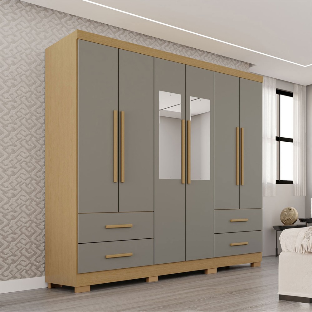 O(a) Guarda-Roupa Casal Balder Premium 6 Portas 4 Gavetas com Pés e Espelho Jequitibá/Granizo - Pnr Móveis é produzido em MDP na escala de brilho Semi-Fosco, e possui um grau de dificuldade de montagem: Médio.