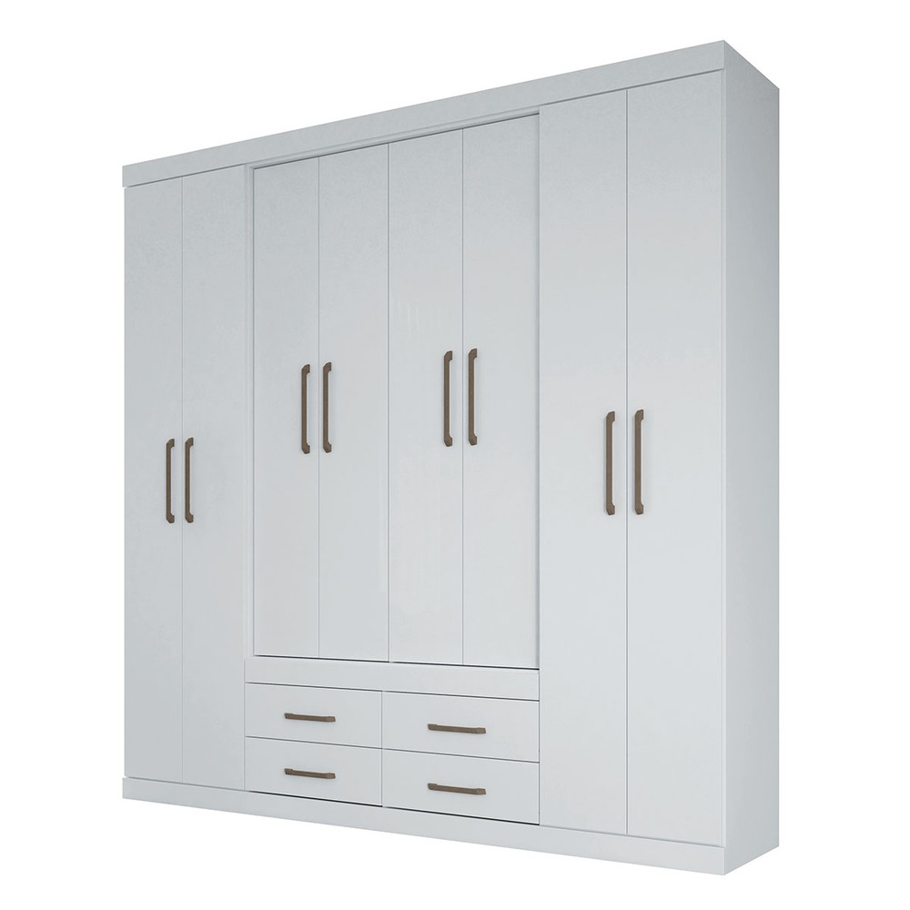 O(a) Guarda-Roupa Casal Nápoles 8 Portas 4 Gavetas Branco - Santos Andirá é produzido em MDP e HDF na escala de brilho Fosco, e possui um grau de dificuldade de montagem: Médio.