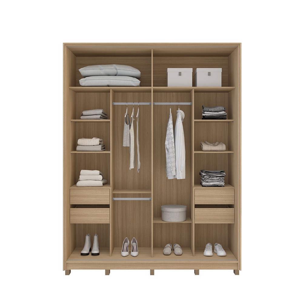 Guarda-Roupa Casal Barcelona 2 Portas 4 Gavetas 100% Mdf Carvalho/Off White - Politorno