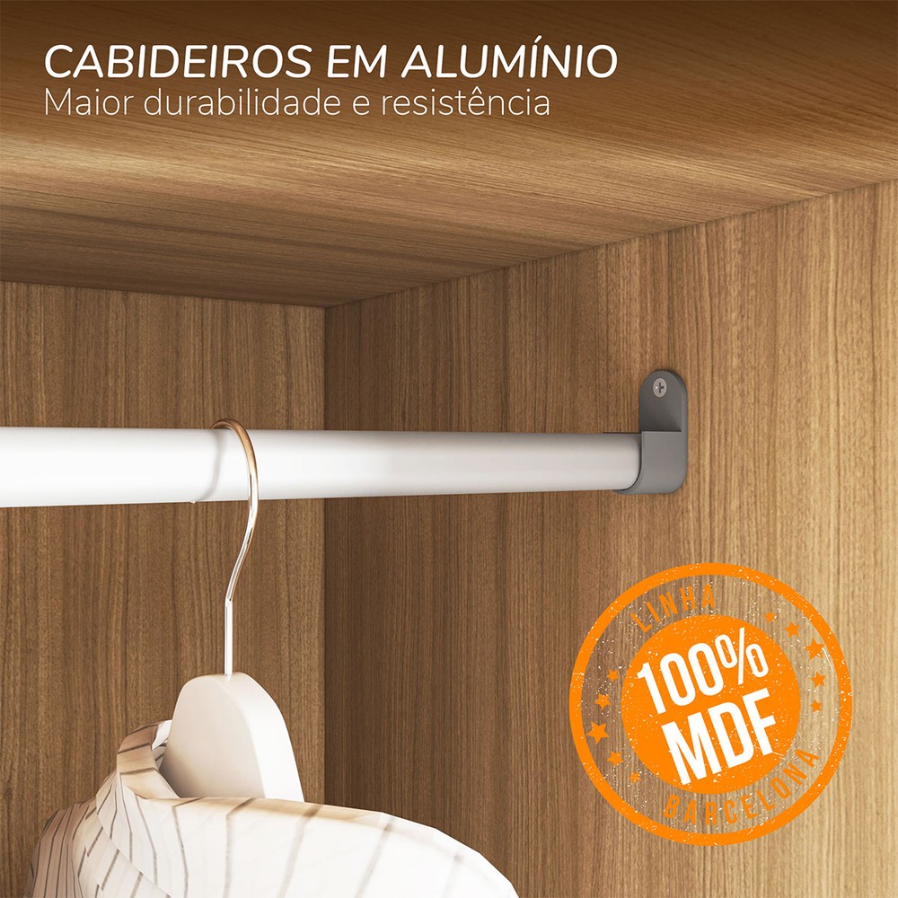 Acompanha Guarda-Roupa, Kit Ferragens e Manual de Montagem